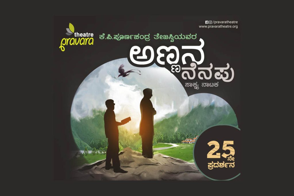 ಬೆಂಗಳೂರು : ಪ್ರವರ ಥಿಯೇಟರ್ ಪ್ರಸ್ತುತ ಪಡಿಸುವ ಕೆ.ಪಿ. ಪೂರ್ಣಚಂದ್ರ ತೇಜಸ್ವಿಯವರ ‘ಅಣ್ಣನ ನೆನಪು’ ಸಾಕ್ಷ್ಯ ನಾಟಕದ 25ನೇ ಪ್ರದರ್ಶನವನ್ನು ದಿನಾಂಕ 25 ಜನವರಿ 2025ರಂದು ಸಂಜೆ ಗಂಟೆ 7-00ಕ್ಕೆ ಬೆಂಗಳೂರಿನ ಬಸವೇಶ್ವರನಗರ ಇಂಜಿನಿಯರ್ಸ್ ಅಸೋಸಿಯೇಷನ್ ಆವರಣದಲ್ಲಿರುವ ಕೆ.ಇ.ಎ. ಪ್ರಭಾತ್ ರಂಗಮಂದಿರದಲ್ಲಿ ಆಯೋಜಿಸಲಾಗಿದೆ. ಈ ನಾಟಕದ ನಿರ್ವಹಣೆ ಅಜಯ್ ಕುಮಾರ್ ಮಾಡಿದ್ದು, ಸಂಗೀತ ಅಕ್ಷಯ್ ಭೊಂಸ್ಲೆ ಮತ್ತು ಬೆಳಕಿನ ವಿನ್ಯಾಸ ಮಂಜು ನಾರಾಯಣ್ ಮತ್ತು ಸೂರ್ಯ ಸಾಥಿ ನೀಡಿದ್ದು, ಕರಣಂ ಪವನ್ ಪ್ರಸಾದ್ ರಂಗ ರೂಪ ಹಾಗೂ ಹನು ರಾಮಸಂಜೀವ ಇವರು ವಿನ್ಯಾಸ ಮತ್ತು ನಿರ್ದೇಶನ ಮಾಡಿರುತ್ತಾರೆ. ಹೆಚ್ಚಿನ ಮಾಹಿತಿಗಾಗಿ 9686869676. ಪ್ರವೇಶ ದರ ರೂ.200/- ಆಗಿರುತ್ತದೆ.