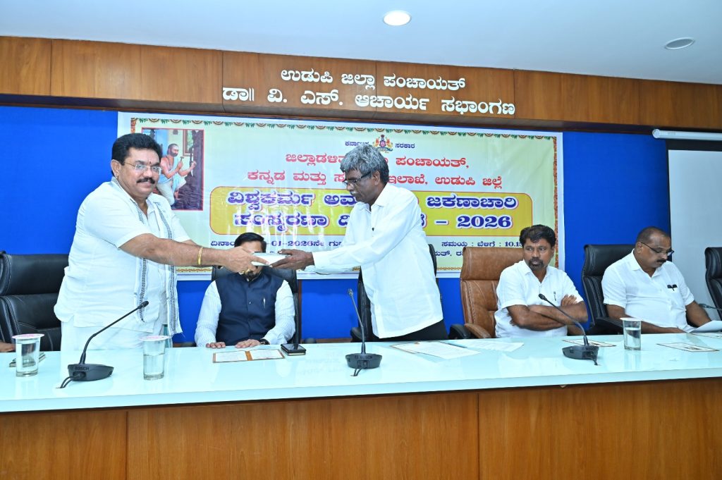 ಉಡುಪಿ : ಮಣಿಪಾಲ ರಜತಾದ್ರಿಯ ಜಿಲ್ಲಾ ಪಂಚಾಯತ್ ಡಾ. ವಿ.ಎಸ್. ಆಚಾರ್ಯ ಸಭಾಂಗಣದಲ್ಲಿ ಜಿಲ್ಲಾಡಳಿತ ಜಿಲ್ಲಾ ಪಂಚಾಯತ್ ಹಾಗೂ ಕನ್ನಡ ಮತ್ತು ಸಂಸ್ಕೃತಿ ಇಲಾಖೆ ಸಂಯುಕ್ತ ಆಶ್ರಯದಲ್ಲಿ ದಿನಾಂಕ 01 ಜನವರಿ 2026ರಂದು ಅಮರಶಿಲ್ಪಿ ಜಕಣಾಚಾರಿ ಸಂಸ್ಮರಣಾ ದಿನಾಚರಣೆ ಕಾರ್ಯಕ್ರಮ ನಡೆಯಿತು.