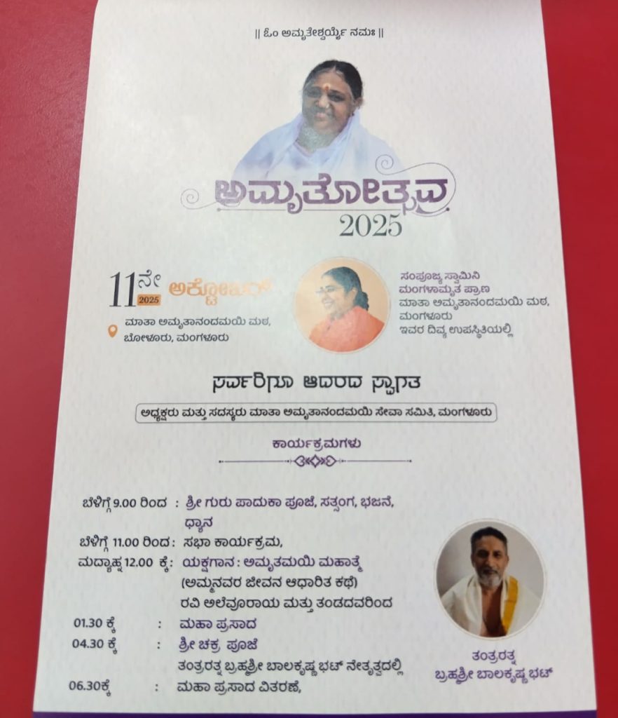 ಬೋಳೂರು ಮಾತಾ ಅಮೃತಾನಂದಮಯಿ ಮಠದಲ್ಲಿ ‘ಅಮೃತೋತ್ಸವ – 2025’ | ಅಕ್ಟೋಬರ್ 11