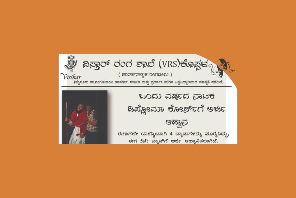 ಕೊಪ್ಪಳ : ಮೈಸೂರು ಡಾ.ಗಂಗೂಬಾಯಿ ಹಾನಗಲ್ ಸಂಗೀತ ಮತ್ತು ಪ್ರದರ್ಶಕ ಕಲೆಗಳ ವಿಶ್ವವಿದ್ಯಾಲಯದ ಮಾನ್ಯತೆ ಪಡೆದಿರುವ ವಿಸ್ತಾರ್ ರಂಗ ಶಾಲೆ ಕೊಪ್ಪಳ (ಪರಿವರ್ತನಾತ್ಮಕ ರಂಗಭೂಮಿ) ಇವರ ವತಿಯಿಂದ ಒಂದು ವರ್ಷದ ನಾಟಕ ಡಿಪ್ಲೋಮಾ ಕೋರ್ಸ್ಗೆ ಅರ್ಜಿ ಆಹ್ವಾನಿಸಲಾಗಿದೆ. ಈಗಾಗಲೇ ಯಶಸ್ವಿಯಾಗಿ 4 ಬ್ಯಾಚುಗಳನ್ನು ಪೂರೈಸಿದ್ದು, ಈಗ 5ನೇ ಬ್ಯಾಚ್ಗೆ ಅರ್ಜಿ ಆಹ್ವಾನಿಸಲಾಗಿದೆ. ಅರ್ಜಿ ಸಲ್ಲಿಸಲು ಕೊನೆಯ ದಿನಾಂಕ 20-07-2024.