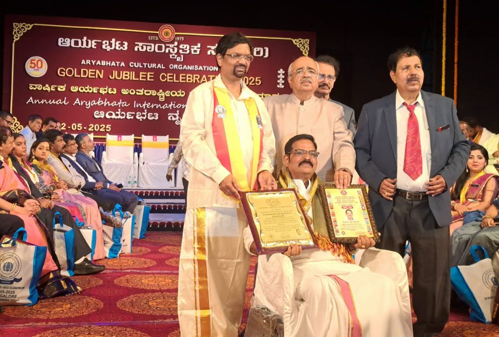 ಮಂಗಳೂರು : ಬೆಂಗಳೂರಿನ ಆರ್ಯಭಟ ಸಾಂಸ್ಕೃತಿಕ ಸಂಸ್ಥೆಯು ತನ್ನ 50ನೇ ವರ್ಷಾಚರಣೆ ಸಂದರ್ಭದಲ್ಲಿ ನಾಡು, ಹೊರನಾಡು ಮತ್ತು ವಿದೇಶಗಳಲ್ಲಿರುವ ವಿವಿಧ ಕ್ಷೇತ್ರಗಳ ಸಾಧಕರನ್ನು ಗುರುತಿಸಿ 2024-25ನೇ ಸಾಲಿನ ಅಂತಾರಾಷ್ಟ್ರೀಯ ಆರ್ಯಭಟ ಪ್ರಶಸ್ತಿಯನ್ನು ನೀಡಿದೆ. ದಿನಾಂಕ 22 ಮೇ 2025ರಂದು ಬೆಂಗಳೂರಿನ ರವೀಂದ್ರ ಕಲಾಕ್ಷೇತ್ರದಲ್ಲಿ ಜರಗಿದ ಪ್ರಶಸ್ತಿ ಪ್ರದಾನ ಸಮಾರಂಭದಲ್ಲಿ ಅವಿಭಜಿತ ಜಿಲ್ಲೆಯ ಖ್ಯಾತ ಹೋಟೆಲ್ ಉದ್ಯಮಿ, ಸಂಘಟಕ ಮತ್ತು ಸಮಾಜ ಸೇವಕ ಪಣಿಯೂರು ಗುತ್ತು ಕರುಣಾಕರ ಶೆಟ್ಟಿ ಇವರು 2025 ಸಾಲಿನ ಆರ್ಯಭಟ ಪ್ರಶಸ್ತಿಯನ್ನು ಸ್ವೀಕರಿಸಿದ್ದಾರೆ.