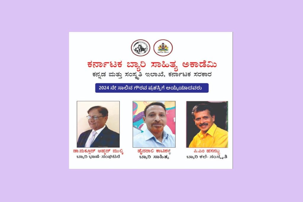 ಮಂಗಳೂರು: ಕರ್ನಾಟಕ ಬ್ಯಾರಿ ಸಾಹಿತ್ಯ ಅಕಾಡಮಿಯು ಕೊಡಮಾಡುವ 2024ನೇ ಸಾಲಿನ ಗೌರವ ಪ್ರಶಸ್ತಿ ಪ್ರಕಟಗೊಂಡಿದೆ. ದಿ ಬ್ಯಾರೀಸ್ ವೆಲ್ಫೇರ್ ಅಸೋಸಿಯೇಶನ್ – ಬೆಂಗಳೂರು ಇದರ ಮಾಜಿ ಅಧ್ಯಕ್ಷ ಹಾಗೂ ಕರ್ನಾಟಕ ಬ್ಯಾರಿ – ಸಾಹಿತ್ಯ ಅಕಾಡಮಿಯ ಮಾಜಿ ಸದಸ್ಯರಾದ ಬೆಂಗಳೂರಿನ ಡಾ. ಮನ್ಸೂದ್ ಅಹ್ಮದ್ ಮುಲ್ಕಿ (ಬ್ಯಾರಿ ಭಾಷೆ ಮತ್ತು ಸಂಘಟನೆ), ಬ್ಯಾರಿ ಕವಿ ಮತ್ತು ಲೇಖಕ ಹೈದರ್ ಅಲಿ ಕಾಟಿಪಳ್ಳ (ಬ್ಯಾರಿ ಸಾಹಿತ್ಯ), ಹಿರಿಯ ಬ್ಯಾರಿ ಹಾಡುಗಾರ ಹಾಗೂ ಕವಿ ಪಿ. ಎಂ. ಹಸನಬ್ಬ ಮೂಡುಬಿದರೆ (ಬ್ಯಾರಿ ಸಂಸ್ಕೃತಿ ಮತ್ತು ಕಲೆ) ಬ್ಯಾರಿ ಸಾಹಿತ್ಯ ಅಕಾಡೆಮಿಯ ಗೌರವ ಪ್ರಶಸ್ತಿಗೆ ಆಯ್ಕೆಯಾಗಿದ್ದಾರೆ.