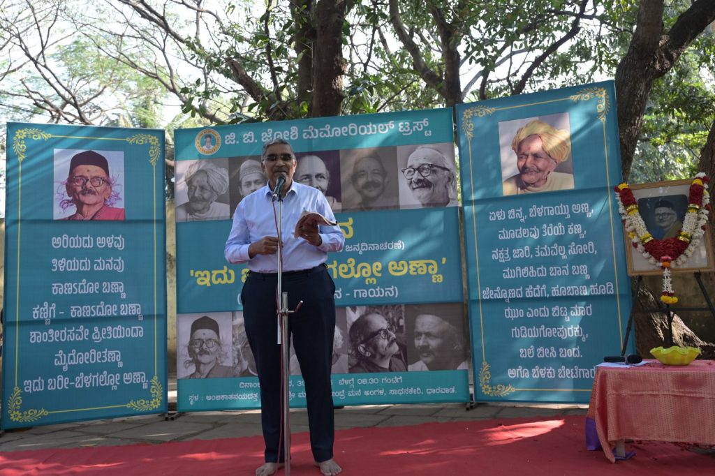 ಧಾರವಾಡ : ಸಾಧನಕೇರಿಯಲ್ಲಿರುವ ವರಕವಿ ಅಂಬಿಕಾತನಯದತ್ತರ ‘ಶ್ರೀಮಾತಾ’ ಮನೆಯಂಗಳದಲ್ಲಿ ದಿನಾಂಕ 31 ಜನವರಿ 2026ರಂದು ಕವಿದಿನ “ಇದು ಬರೀ ಬೆಳಗಲ್ಲೋ ಅಣ್ಣಾ” ಬೇಂದ್ರೆ ಕಾವ್ಯ ವಾಚನ ಗಾಯನ ಕಾರ್ಯಕ್ರಮವನ್ನು ಧಾರವಾಡದ ಜಿ.ಬಿ. ಜೋಶಿ ಮೆಮೋರಿಯಲ್ ಟ್ರಸ್ಟ್ ಆಯೋಜಿಸಿತ್ತು. ಇಂದು ಬೇಂದ್ರೆಯವರ 130ನೇ ಜನ್ಮ ದಿನ.