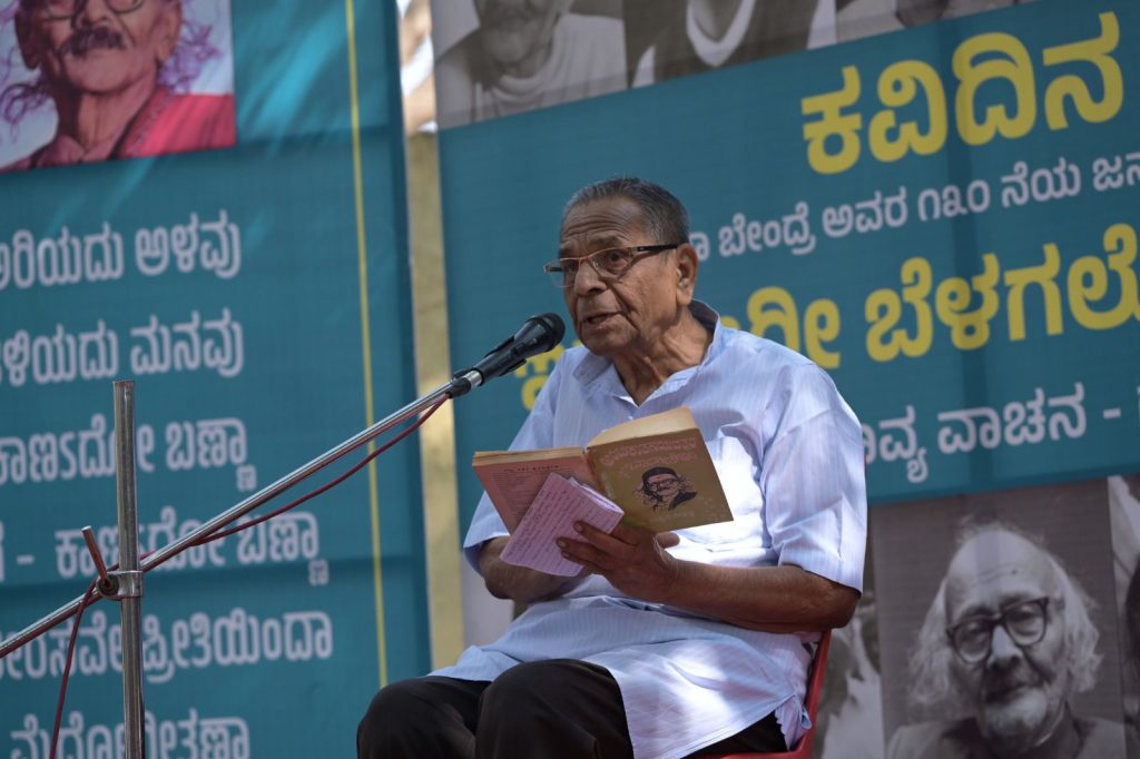 ಬೇಂದ್ರೆ ಭಾವಚಿತ್ರಕ್ಕೆ ಪುಷ್ಪನಮನ ಮಾಡುವುದರೊಂದಿಗೆ ಕಾರ್ಯಕ್ರಮ ಆರಂಭವಾಯಿತು. ಬೇಂದ್ರೆ ವಿಶೇಷ ಭಾವಚಿತ್ರಗಳು ಮತ್ತು ಕವಿತೆಯ ಸಾಲುಗಳಿದ್ದ ವೇದಿಕೆ ಗಮನ ಸೆಳೆಯುವಂತಿತ್ತು. ಸುಂದರ ವೇದಿಕೆ ಶ್ರೀಮಾತಾದ ಪ್ರಸನ್ನ ಅಂಗಳ, ಆಗಸದೆತ್ತರಕ್ಕೆ ನಿಂತ ಗಿಡ ಮರ ತಲೆದೂಗುತ್ತಿದ್ದವು. ಅವುಗಳಲ್ಲಿಯ ಪಕ್ಷಿಗಳು ಕೂಡ ಬೇಂದ್ರೆ ಕಾವ್ಯ ನುಡಿಯುತ್ತಿದ್ದವು. ಬೇಂದ್ರೆಯವರ ನೆಚ್ಚಿನ ಪಾತರಗಿತ್ತಿಗಳು ಹುರುಪಿನಿಂದ ಹಾರಾಡುತ್ತ ಇವನ್ನೆಲ್ಲ ನಮಗೆ ಬೊಟ್ಟು ಮಾಡಿ ತೋರಿಸುತ್ತಿದ್ದವು.
