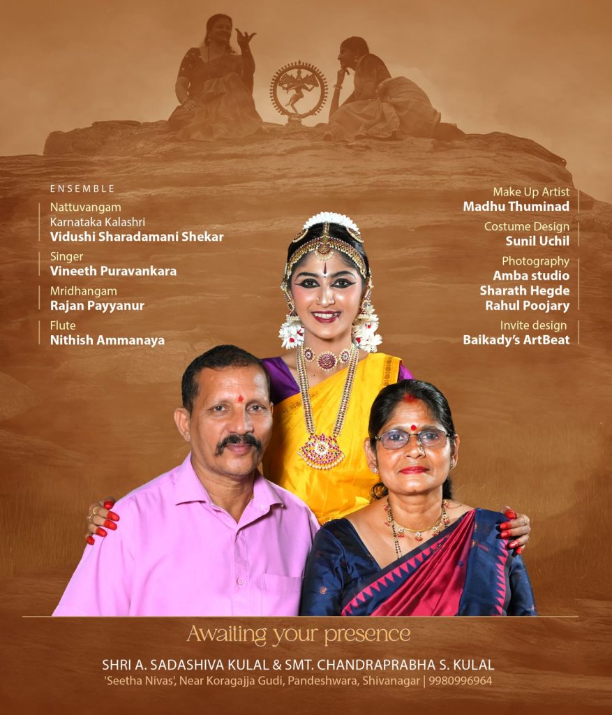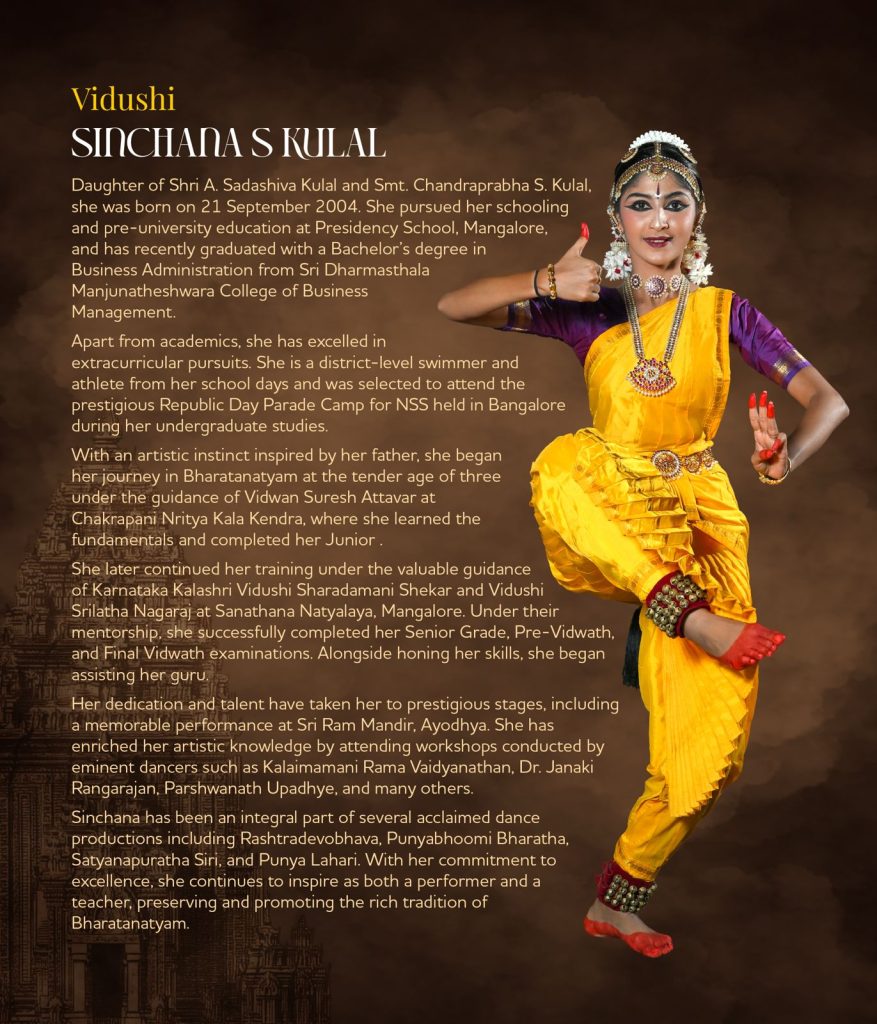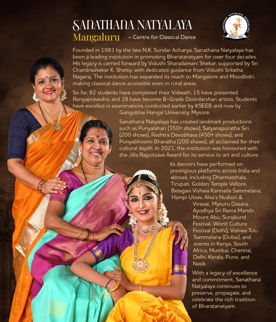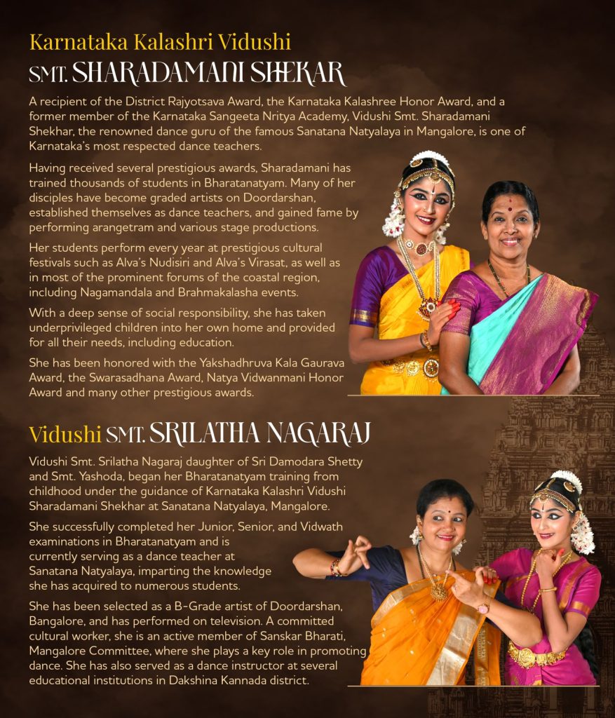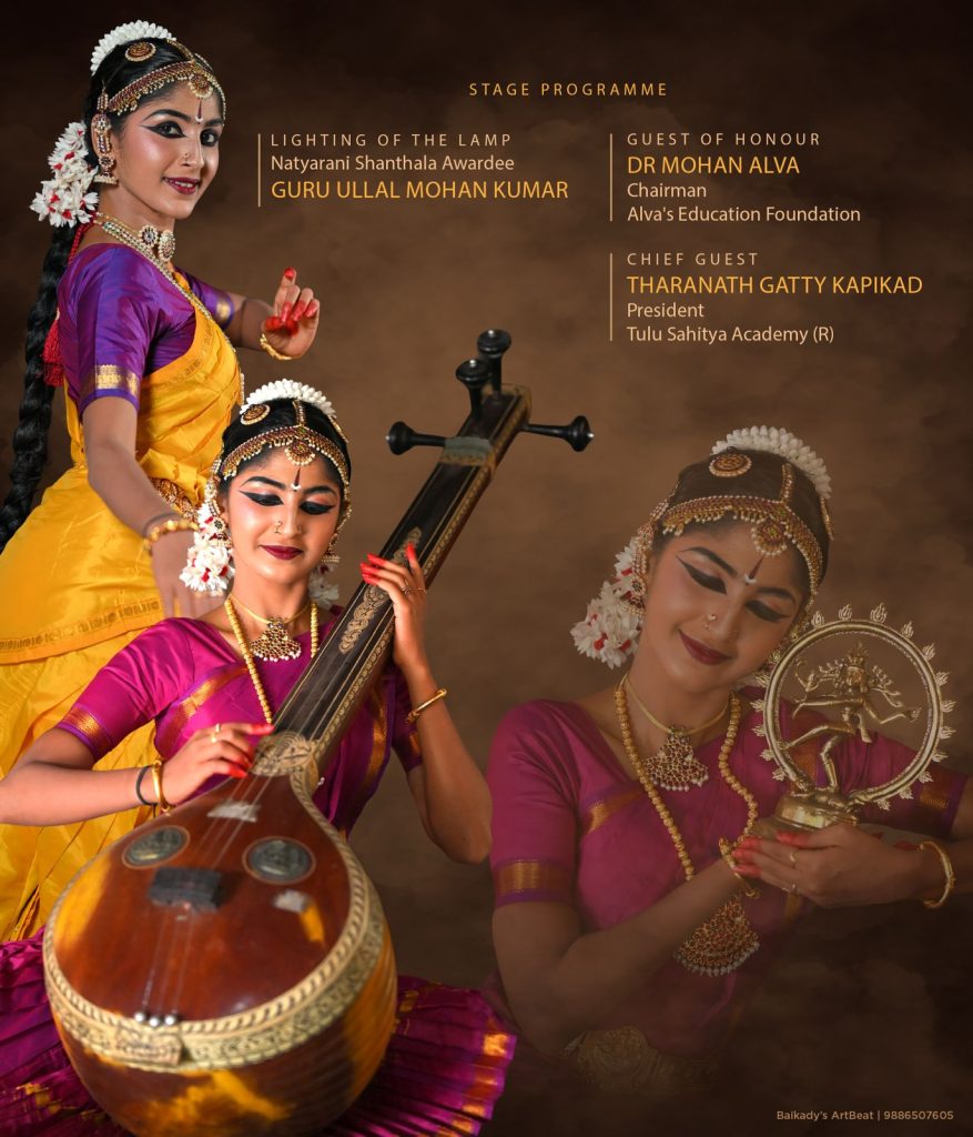 ಕರ್ನಾಟಕ ಕಲಾತಿಲಕ ನಾಟ್ಯಾಚಾರ್ಯ ಶ್ರೀ ಉಳ್ಳಾಲ್ ಮೋಹನ್ ಕುಮಾರ್ ಇವರಿಂದ ದೇವತಾ ದೀಪ ಪ್ರಜ್ವಲನೆಯೊಂದಿಗೆ ಪ್ರಾರಂಭವಾಗುವ ಈ ಕಾರ್ಯಕ್ರಮದಲ್ಲಿ ಆಳ್ವಾಸ್ ನ ಡಾ. ಮೋಹನ್ ಆಳ್ವ ಮತ್ತು ತುಳು ಸಾಹಿತ್ಯ ಅಕಾಡೆಮಿಯ ಅಧ್ಯಕ್ಷರಾದ ತಾರಾನಾಥ್ ಗಟ್ಟಿ ಇವರು ಮುಖ್ಯ ಅತಿಥಿಯಾಗಿ ಭಾಗವಹಿಸಲಿದ್ದಾರೆ. ಭರತನಾಟ್ಯ ಕಾರ್ಯಕ್ರಮಕ್ಕೆ ನಟುವಾಂಗಂನಲ್ಲಿ ಗುರು ಶಾರದಾಮಣಿ ಶೇಖರ್, ಹಾಡುಗಾರಿಕೆಯಲ್ಲಿ ವಿನೀತ್ ಪುರವಂಕರ, ಮೃದಂಗದಲ್ಲಿ ರಾಜನ್ ಪಯ್ಯನೂರ್ ಮತ್ತು ಕೊಳಲು ನಿತೀಶ್ ಅಮ್ಮಣ್ಣಯ್ಯ ಇವರುಗಳು ಸಹಕರಿಸಲಿದ್ದಾರೆ.