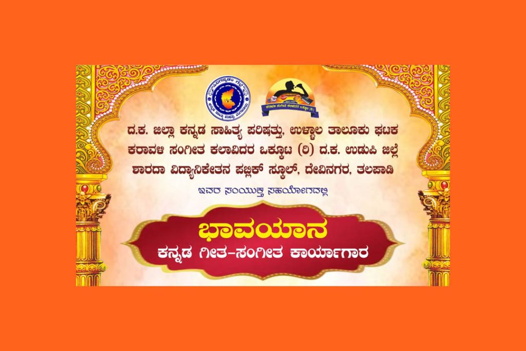 ಮಂಗಳೂರು : ದ.ಕ. ಜಿಲ್ಲಾ ಕನ್ನಡ ಸಾಹಿತ್ಯ ಪರಿಷತ್ತು, ಉಳ್ಳಾಲ ತಾಲೂಕು ಘಟಕ, ಕರಾವಳಿ ಸಂಗೀತ ಕಲಾವಿದರ ಒಕ್ಕೂಟ (ರಿ.) ದ.ಕ. ಉಡುಪಿ ಜಿಲ್ಲೆ ಮತ್ತು ಶಾರದಾ ವಿದ್ಯಾನಿಕೇತನ ಪಬ್ಲಿಕ್ ಸ್ಕೂಲ್, ದೇವಿನಗರ, ತಲಪಾಡಿ ಇವರ ಸಂಯುಕ್ತ ಸಹಯೋಗದಲ್ಲಿ ‘ಭಾವಯಾನ’ ಕನ್ನಡ ಗೀತ-ಸಂಗೀತ ಕಾರ್ಯಾಗಾರವನ್ನು ದಿನಾಂಕ 13-06-2024ರಂದು ಬೆಳಿಗ್ಗೆ ಗಂಟೆ 9-00ರಿಂದ ಶಾರದಾ ವಿದ್ಯಾನಿಕೇತನ ಡೇ-ಬೋರ್ಡಿಂಗ್ ವಿಭಾಗದ ಸರಸ್ವತಿ ಮಂದಿರದಲ್ಲಿ ಹಮ್ಮಿಕೊಳ್ಳಲಾಗಿದೆ.