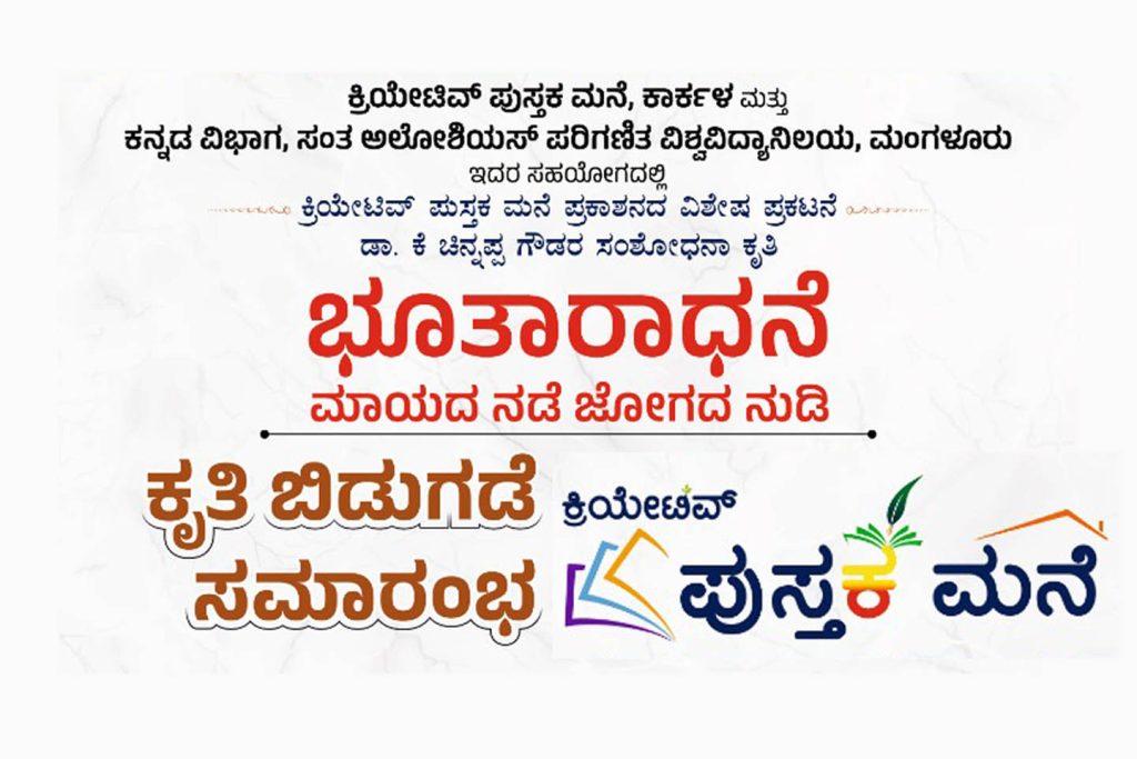 ಮಂಗಳೂರು : ಕಾರ್ಕಳದ ಕ್ರಿಯೇಟಿವ್ ಪುಸ್ತಕ ಮನೆ ಮತ್ತು ಕನ್ನಡ ವಿಭಾಗ ಸಂತ ಅಲೋಶಿಯಸ್ ಪರಿಗಣಿತ ವಿಶ್ವವಿದ್ಯಾನಿಲಯ ಮಂಗಳೂರು ಇದರ ಸಹಯೋಗದಲ್ಲಿ ಕ್ರಿಯೇಟಿವ್ ಪುಸ್ತಕ ಮನೆ ಪ್ರಕಾಶನದ ವಿಶೇಷ ಪ್ರಕಟಣೆ ‘ಭೂತಾರಾಧನೆ’ ಮಾಯದ ನಡೆ ಜೋಗದ ನುಡಿ ಡಾ. ಕೆ. ಚಿನ್ನಪ್ಪ ಗೌಡರ ಸಂಶೋಧನಾ ಕೃತಿ ಬಿಡುಗಡೆ ಸಮಾರಂಭವನ್ನು ದಿನಾಂಕ 20 ಡಿಸೆಂಬರ್ 2025ರಂದು ಅಪರಾಹ್ನ 3-00 ಗಂಟೆಗೆ ಸಂತ ಅಲೋಶಿಯಸ್ ಪರಿಗಣಿತ ವಿಶ್ವವಿದ್ಯಾನಿಲಯದ ಎಲ್.ಸಿ.ಆರ್.ಐ. ಬ್ಲಾಕ್ ಎಲ್.ಎಫ್. ರಸ್ಕಿನ್ಹ ಸಭಾಂಗಣದಲ್ಲಿ ಆಯೋಜಿಸಲಾಗಿದೆ.