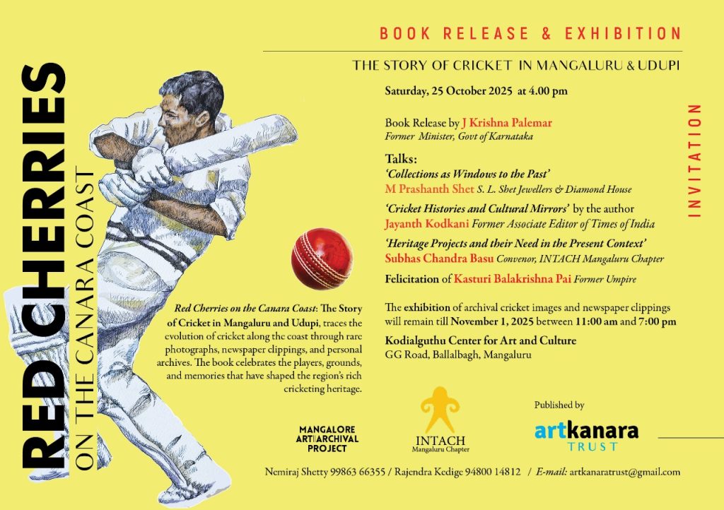 ಮಾಜಿ ಸಚಿವರಾದ ಜೆ. ಕೃಷ್ಣ ಪಾಲೆಮಾರ್ ಇವರು ಪುಸ್ತಕ ಬಿಡುಗಡೆ ಮಾಡಲಿದ್ದು, ಎಂ. ಪ್ರಶಾಂತ್ ಶೇಟ್, ಜಯಂತ್ ಕೋಡ್ಕಣಿ ಮತ್ತು ಸುಭಾಸ್ ಚಂದ್ರ ಬಸು ಇವರುಗಳು ಉಪನ್ಯಾಸ ನೀಡಲಿದ್ದಾರೆ. ಇದೇ ಸಂದರ್ಭದಲ್ಲಿ ಮಾಜಿ ಅಂಪೈರ್ ಕಸ್ತೂರಿ ಬಾಲಕೃಷ್ಣ ಪೈ ಇವರನ್ನು ಸನ್ಮಾನಿಸಲಾಗುವುದು. ದಿನಾಂಕ 01 ನವೆಂಬರ್ 2025ರ ತನಕ ಬೆಳಗ್ಗೆ 11-00 ಗಂಟೆಯಿಂದ ಸಂಜೆ 7-00 ಗಂಟೆ ತನಕ ಪ್ರದರ್ಶನವು ತೆರೆದಿರುತ್ತದೆ. ಹೆಚ್ಚಿನ ಮಾಹಿತಿಗಾಗಿ ನೇಮಿರಾಜ ಶೆಟ್ಟಿ 99863 66355 ಮತ್ತು ರಾಜೇಂದ್ರ ಕೇದಿಗೆ 94800 14812 ಇವರನ್ನು ಸಂಪರ್ಕಿಸಿರಿ.