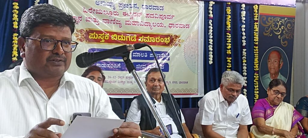 ಧಾರವಾಡ : ಅನುಷ್ಕಾ ಪ್ರಕಾಶನ, ಹಿರೇಮಲ್ಲೂರು ಈಶ್ವರನ್ ಪದವಿಪೂರ್ವ ವಿಜ್ಞಾನ ಮತ್ತು ವಾಣಿಜ್ಯ ಮಹಾವಿದ್ಯಾಲಯ ಧಾರವಾಡ ಇವುಗಳ ಸಂಯುಕ್ತ ಆಶ್ರಯದಲ್ಲಿ ದಿನಾಂಕ 26 ಡಿಸೆಂಬರ್ 2025ರಂದು ಪುಸ್ತಕ ಬಿಡುಗಡೆ ಸಮಾರಂಭದಲ್ಲಿ ಪ್ರೊ. ಮಾಲತಿ ಪಟ್ಟಣಶೆಟ್ಟಿಯವರ ‘ಕಣ್ಣಂಚಿನ ತಾರೆ’, ವಿಕಾಸ ಹೊಸಮನಿಯವರ ‘ಜೀವ ಸಂವಾದ’, ಡಾ. ಸುಭಾಷ್ ಪಟ್ಟಾಜೆಯವರ ‘ಕಾಡುಸಂಪಿಗೆ’ ಮತ್ತು ‘ಮಾಲತಿ ಪಟ್ಟಣಶೆಟ್ಟಿ ವ್ಯಕ್ತಿತ್ವ – ಸಾಹಿತ್ಯ’ ಎಂಬ ನಾಲ್ಕು ಕೃತಿಗಳು ಲೋಕಾರ್ಪಣೆಗೊಂಡವು.
