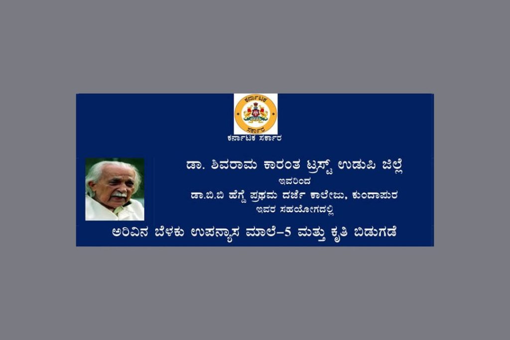 ಕುಂದಾಪುರ: ಡಾ.ಶಿವರಾಮ ಕಾರಂತ ಟ್ರಸ್ಟ್ ಉಡುಪಿ ಜಿಲ್ಲೆ ಇವರ ವತಿಯಿಂದ ಡಾ. ಬಿ. ಬಿ. ಹೆಗ್ಡೆ ಪ್ರಥಮ ದರ್ಜೆ ಕಾಲೇಜು ಕುಂದಾಪುರ ಇವರ ಸಹಯೋಗದಲ್ಲಿ ಅರಿವಿನ ಬೆಳಕು ಉಪನ್ಯಾಸ ಮಾಲೆ-5 ಮತ್ತು ಕೃತಿ ಲೋಕಾರ್ಪಣಾ ಕಾರ್ಯಕ್ರಮವು ದಿನಾಂಕ 29 ಮೇ 2025ರಂದು ಮಧ್ಯಾಹ್ನ 2.30ಕ್ಕೆ ಕುಂದಾಪುರದ ಡಾ. ಬಿ. ಬಿ. ಹೆಗ್ಡೆ ಪ್ರಥಮ ದರ್ಜೆ ಕಾಲೇಜಿನಲ್ಲಿ ನಡೆಯಲಿದೆ.