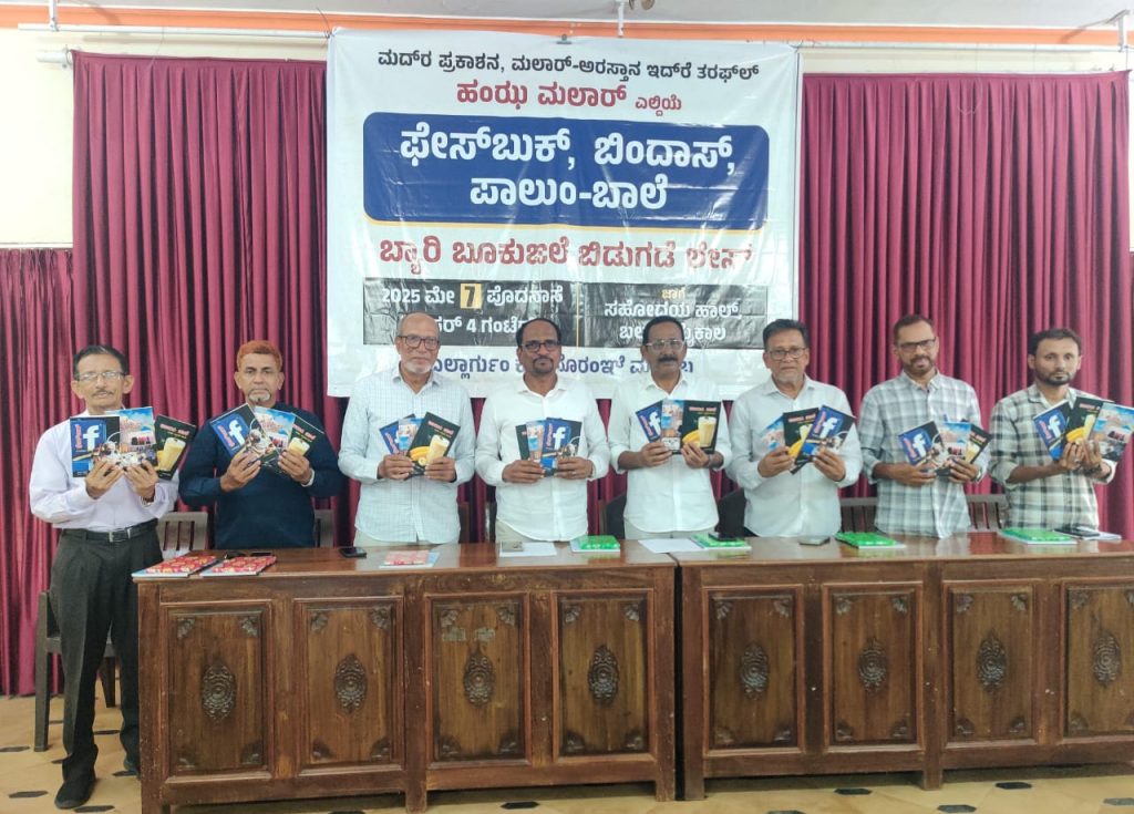 ಮಂಗಳೂರು : ಮಲಾರ್ ಅರಸ್ತಾನದ ಮದ್ರ ಪ್ರಕಾಶನ ಪ್ರಕಟಿಸಿದ ಪತ್ರಕರ್ತ ಹಂಝ ಮಲಾರ್ ಬ್ಯಾರಿ ಭಾಷೆಯಲ್ಲಿ ಬರೆದ ಫೇಸ್ಬುಕ್ (ಕಥಾ ಸಂಕಲನ), ಬಿಂದಾಸ್ (ನಾಟಕ ಸಂಕಲನ), ಪಾಲುಂ-ಬಾಲೆ (ಅಂಕಣ ಬರಹಗಳ ಸಂಕಲನ) ಪುಸ್ತಕಗಳ ಬಿಡುಗಡೆ ಕಾರ್ಯಕ್ರಮವು ದಿನಾಂಕ 07 ಮೇ 2025ರಂದು ಸಹೋದಯ ಸಭಾಂಗಣದಲ್ಲಿ ನಡೆಯಿತು.