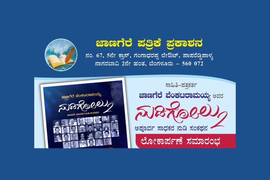 ಬೆಂಗಳೂರು : ಜಾಣಗೆರೆ ಪತ್ರಿಕೆ ಪ್ರಕಾಶನ ಇದರ ವತಿಯಿಂದ ಸಾಹಿತಿ ಪತ್ರಕರ್ತ ಜಾಣಗೆರೆ ವೆಂಕಟರಾಮಯ್ಯ ಇವರ ‘ನುಡಿಗೋಲು 2’ ಅಪೂರ್ವ ಸಾಧಕರ ನುಡಿ ಸಂಕಥನ ಲೋಕಾರ್ಪಣೆ ಸಮಾರಂಭವನ್ನು ದಿನಾಂಕ 15 ಮಾರ್ಚ್ 2025ರಂದು ಬೆಳಿಗ್ಗೆ 11-00 ಗಂಟೆಗೆ ಬೆಂಗಳೂರು ಕಬ್ಬನ್ ಪಾರ್ಕ್ ಪ್ರೆಸ್ ಕ್ಲಬ್ ಸಭಾಂಗಣದಲ್ಲಿ ಹಮ್ಮಿಕೊಳ್ಳಲಾಗಿದೆ.