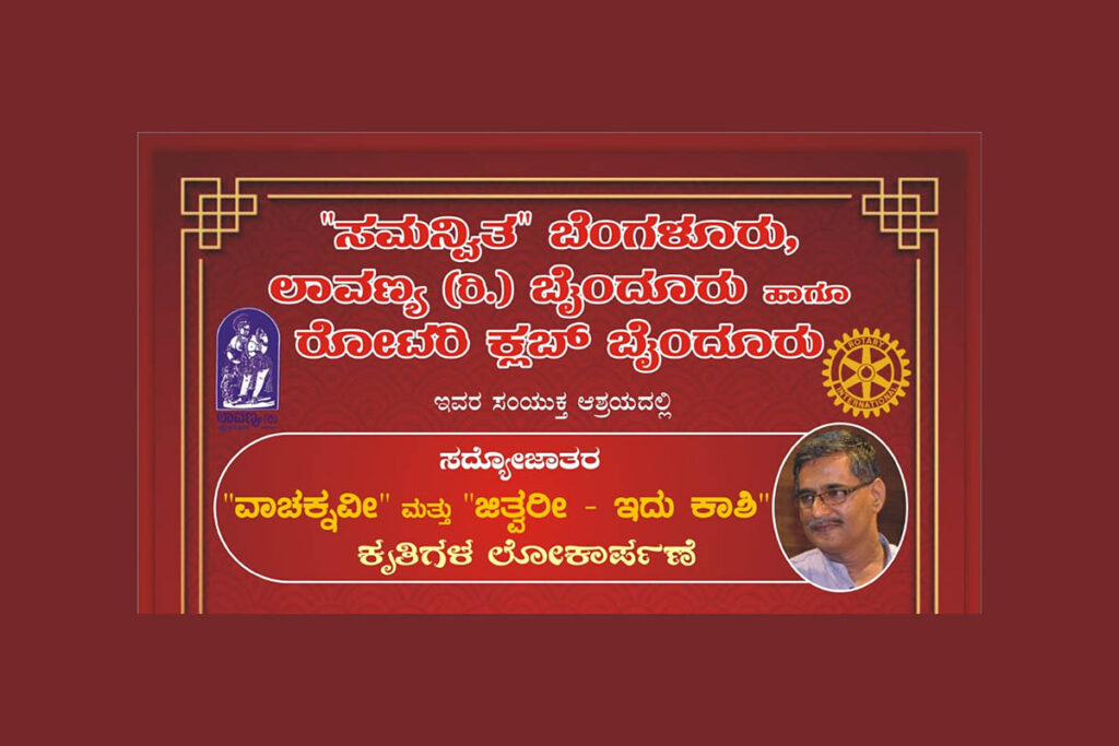 ಬೈಂದೂರು : ‘ಸಮನ್ವಿತ’ ಬೆಂಗಳೂರು, ಲಾವಣ್ಯ (ರಿ.) ಬೈಂದೂರು ಹಾಗೂ ರೋಟರಿ ಕ್ಲಬ್ ಬೈಂದೂರು ಇವರ ಸಂಯುಕ್ತ ಆಶ್ರಯದಲ್ಲಿ ‘ವಾಚಕ್ನವೀ’ ಮತ್ತು ‘ಜಿತ್ವರೀ – ಇದು ಕಾಶಿ’ ಕೃತಿಗಳ ಲೋಕಾರ್ಪಣೆ ಕಾರ್ಯಕ್ರಮವು ದಿನಾಂಕ : 09-07-2023ರ ಬೆಳಿಗ್ಗೆ 10 ಗಂಟೆಗೆ ಬೈಂದೂರಿನ ರೋಟರಿ ಸಮುದಾಯ ಭವನದಲ್ಲಿ ನಡೆಯಲಿದೆ.