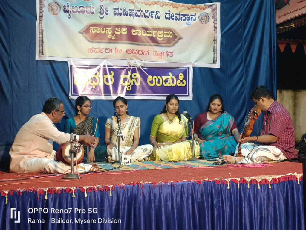 ಕಾರ್ಯದರ್ಶಿ ಶ್ರೀಯುತ ನಾರಾಯಣ ದಾಸ್ ಉಡುಪ ಕಲಾವಿದರನ್ನು ಸ್ವಾಗತಿಸಿ, ದೀಪ ಬೆಳಗಿಸುವುದರೊದಿಗೆ ಕಾರ್ಯಕ್ರಮವನ್ನು ಪ್ರಾರಂಭಿಸಿದರು. ಹೆಚ್ಚು ದೇವಿ ಕೃತಿಗಳನ್ನು ಶಿಷ್ಯೆಯರಿಂದ ಹಾಡಿಸಿ, ಕೊನೆಗೆ ಫರಸ್ ರಾಗದ ಅದಿತಾಳದ ತಿಲ್ಲಾನದೊಂದಿಗೆ ಕಾರ್ಯಕ್ರಮವು ಸಂಪನ್ನಗೊಂಡಿತು. ಕು.ಶ್ರಾವಣಿ ಶಾಸ್ತ್ರಿ, ಕು.ಜೇತ್ರ ಮಯ್ಯ, ಕು.ಹಿತಾ ಮಯ್ಯ, ಡಾ.ರಶ್ಮಿ ನಾಯಕ್, ಮಾ.ಯಶಸ್ವೀ ನಾಯಕ್, ಸ್ವಾತಿ ರಾವ್, ಸರಸ್ವತಿ ಉಡುಪ, ಸಪ್ನಾ ಕೊಳತ್ತಾಯ, ಶ್ರಾವ್ಯ ಬಾಸ್ತ್ರಿ, ರಂಜನಿ ಸಾಮಗ ಇವರೆಲ್ಲಾ ಇಂದು ಗುರುಗಳ ಜೊತೆಯಲ್ಲಿ ಹಾಡಿ ಮಹಿಷ ಮರ್ದಿನಿ ದೇವರ ಸನ್ನಿಧಿಯಲ್ಲಿ ಸಂಗೀತ ಸೇವೆ ಅರ್ಪಣೆ ಮಾಡಿದಾಗ, ರಾಮಕೃಷ್ಣ ಕೊಡಂಚರು ಧನ್ಯವಾದ ಸಮರ್ಪಸಿದರು.