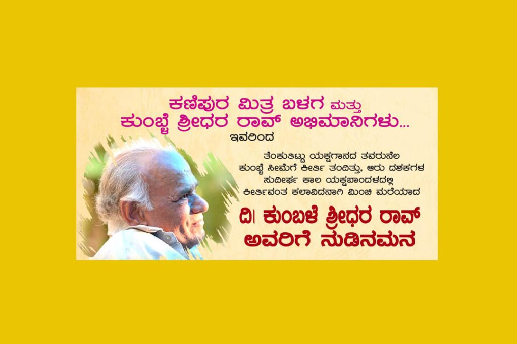 ನಿರ್ಜಾಲು : ಕಣಿಪುರ ಮಿತ್ರ ಬಳಗ ಮತ್ತು ಕುಂಬ್ಳೆ ಶ್ರೀಧರ ರಾವ್ ಅಭಿಮಾನಿಗಳು ಇವರಿಂದ ದಿ. ಕುಂಬಳೆ ಶ್ರೀಧರ ರಾವ್ ಇವರಿಗೆ ನುಡಿನಮನ ಮತ್ತು ತಾಳಮದ್ದಳೆ ಕಾರ್ಯಕ್ರಮವು 28 ಜುಲೈ 2024ರಂದು ನಿರ್ಜಾಲು ಶ್ರೀ ಕುಮಾರ ಸ್ವಾಮಿ ಭಜನಾ ಮಂದಿರದಲ್ಲಿ ನಡೆಯಲಿದೆ.