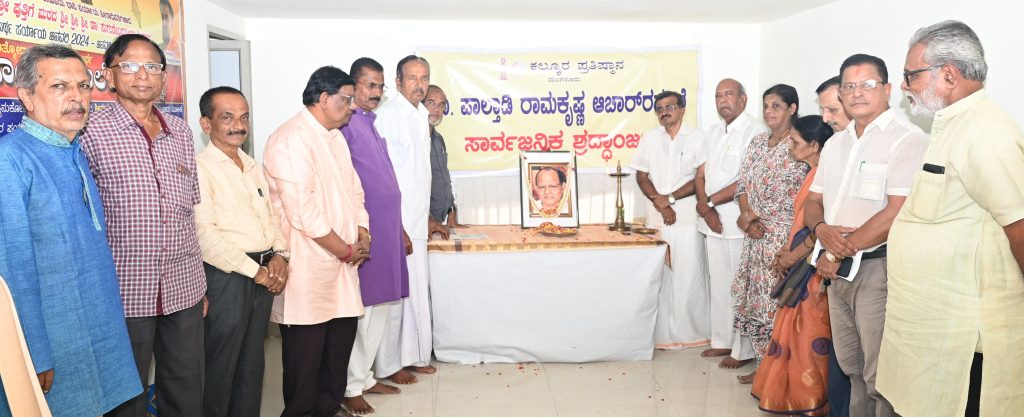 ಮಂಗಳೂರು : ಕಲ್ಕೂರ ಪ್ರತಿಷ್ಠಾನದ ಆಯೋಜಕತ್ವದಲ್ಲಿ ಇತ್ತೀಚೆಗೆ ನಿಧನರಾದ ಹಿರಿಯ ಸಾಹಿತಿ ಪಾಲ್ತಾಡಿ ರಾಮಕೃಷ್ಣ ಆಚಾರ್‌ ಇವರಿಗೆ ಸಾರ್ವಜನಿಕ ಶ್ರದ್ಧಾಂಜಲಿ ಕಾರ್ಯಕ್ರಮವು ದಿನಾಂಕ 16-05-2024ರ ಗುರುವಾರದಂದು ಮಂಗಳೂರಿನ ಕಲ್ಕೂರ ಪ್ರತಿಷ್ಠಾನದ ಕಛೇರಿಯಲ್ಲಿ ನಡೆಯಿತು.
