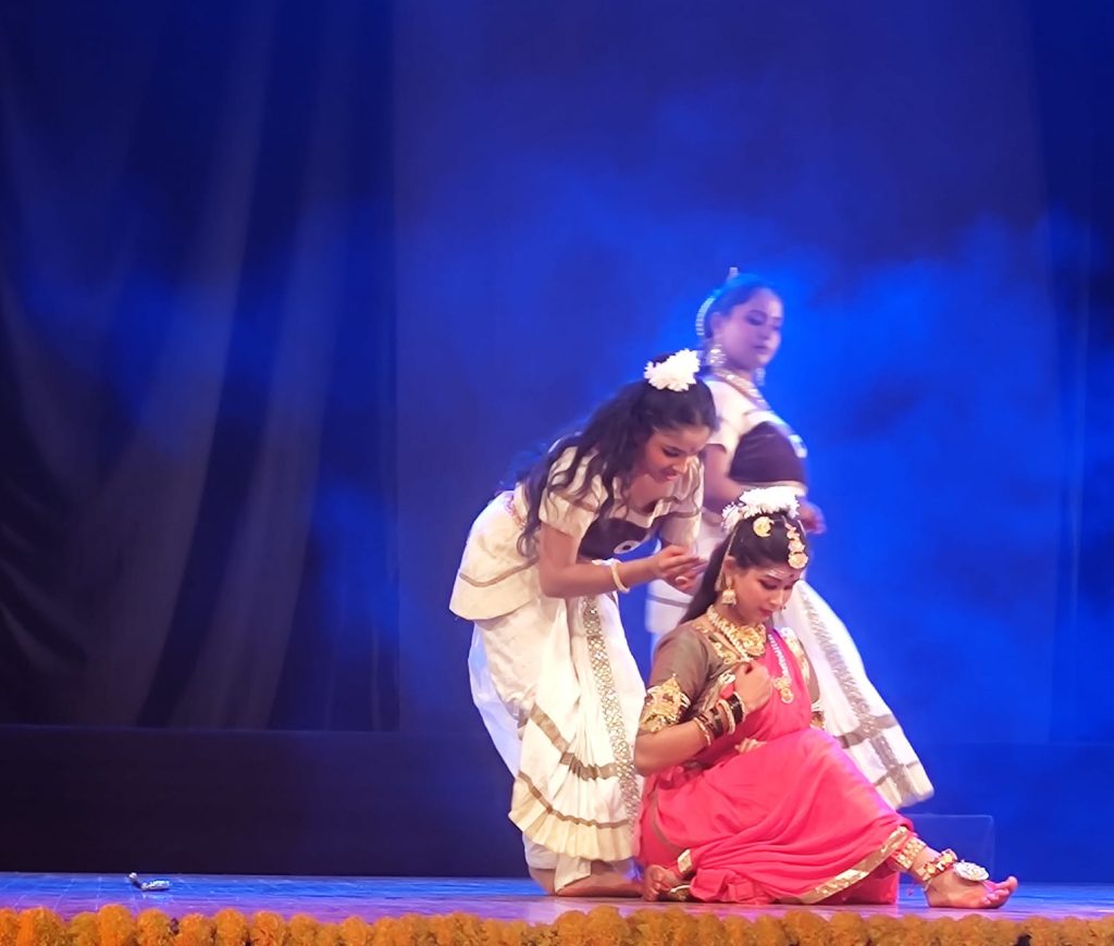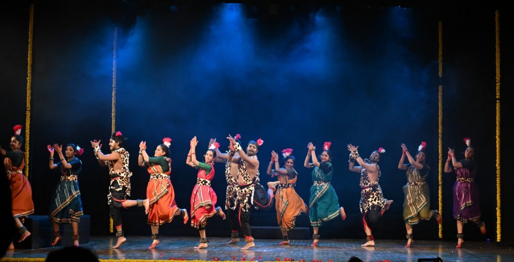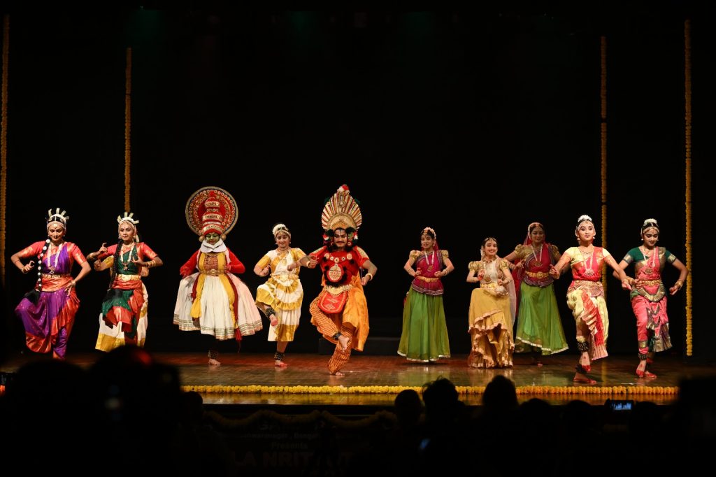 ಶುಭಾರಂಭದಲ್ಲಿ ‘ನಾಟ್ಯ ದೇಗುಲ ಡ್ಯಾನ್ಸ್ ಸ್ಕೂಲ್’ ಕಲಾತ್ಮಕ ನಿರ್ದೇಶಕ ವಿ.ಎಂ. ಸ್ವಾಮಿ ಅವರ ಶಿಷ್ಯರಿಂದ ಸ್ವಾಗತ ನರ್ತನ ಮತ್ತು ಭಾರತೀಯ ವಿವಿಧ ಶಾಸ್ತ್ರೀಯ ನೃತ್ಯಶೈಲಿಗಳ ಸಮಾಗಮದಲ್ಲಿ ಅರ್ಪಿಸಲಾದ ‘ಮಹಾ ಗಣಪತಿ’ಯ ಪ್ರಾರ್ಥನೆ ಚೇತೋಹಾರಿಯಾಗಿತ್ತು. ಮೊದಲಿಗೆ ಯಕ್ಷಗಾನದ ಮಟ್ಟುವಿನಲ್ಲಿ ಮೂಡಿ ಬಂದ ಭಾಗವತರ ಹಾಡುಗಾರಿಕೆಗೆ ವಿಶಿಷ್ಟ ಹೆಜ್ಜೆ ಕುಣಿತದಲ್ಲಿ ಗಣಪತಿಯ ಶ್ಲೋಕ, ಅನಂತರ ಭರತನಾಟ್ಯ, ಕುಚಿಪುಡಿ, ಮೋಹಿನಿಯಾಟ್ಟಂ, ಕಥಕ್ಕಳಿ ಮತ್ತು ಕಥಕ್ ಮುಂತಾದ ಪಂಚ ನೃತ್ಯಶೈಲಿಗಳಲ್ಲಿ ಗಣಪತಿಯ ದೈವಾರಾಧನೆ ಆಕರ್ಷಕ ವೇಷಭೂಷಣಗಳಿಂದ, ಮನಮೋಹಕ ಆಂಗಿಕಾಭಿನಯ- ಅಭಿನಯಗಳಿಂದ ರಸಾನುಭವ ನೀಡಿತು. ನೃತ್ಯದ ಎಲ್ಲಾ ಆಯಾಮಗಳನ್ನು ಪ್ರದರ್ಶಿಸಿದ, ವಿವಿಧ ನೃತ್ಯ ಶೈಲಿಗಳ ಸಂಗಮ ವನಮೋಹಕವಾಗಿ ಮೂಡಿ ಬಂತು.