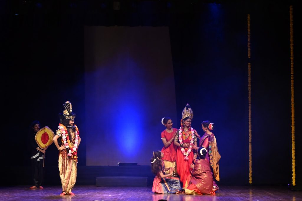 ಅನಂತರ ‘ದಿ ಸ್ಟ್ರಕ್ಚರಲ್ ಸ್ಕೂಲ್ ಆಫ್ ಫೈನ್ ಆರ್ಟ್ಸ್’ನ ನಾಟ್ಯಗುರು ವಿದುಷಿ ಅಕ್ಷರ ಭಾರಧ್ವಾಜ್ ಇವರ ಅಮೋಘ ನೃತ್ಯಸಂಯೋಜನೆ- ಪರಿಕಲ್ಪನೆಯಲ್ಲಿ ಮೈದಾಳಿದ ಅವರ ಶಿಷ್ಯರು ಸಾಕ್ಷಾತ್ಕರಿಸಿದ – ‘ರಸ ರಾಜ’ – ಸದಾಶಿವನ ಜೀವನದ ಪ್ರಮುಖ ಘಟನೆಗಳನ್ನು ಸಾಂದ್ರೀಕೃತವಾಗಿ ಅಷ್ಟೇ ಪರಿಣಾಮಕಾರಿಯಾಗಿ ಚಿತ್ರಿಸಿದ ವಿಶೇಷ ನೃತ್ಯರೂಪಕ ಚಿರಸ್ಮರಣೀಯವಾಗಿತ್ತು. ಕಲಾವಿದರ ಪರಕಾಯ ಪ್ರವೇಶದ ಅಭಿನಯ ತಾದಾತ್ಮ್ಯ ಮನನೀಯವಾಗಿತ್ತು. ಪ್ರತಿಯೊಂದು ಪಾತ್ರಗಳನ್ನೂ ಆಳವಾಗಿ ಪರಿಭಾವಿಸಿ, ಹೃದಯಂಗಮವಾಗಿ ಕಟ್ಟಿಕೊಡಲಾದ ರೂಪಕದಲ್ಲಿ ಬಳಸಲಾದ ಪರಿಕರಗಳು, ಸಹಜತೆಯಲ್ಲಿ ಸ್ಪರ್ಶಿಸಿದ ಪಾತ್ರಗಳ ವೇಷ-ಭೂಷಣ, ಪ್ರಸಾಧನ ಪ್ರತಿಯೊಂದು ಇಲ್ಲಿ ಪಾತ್ರವಾಗಿ ಮೆರೆದಿತ್ತು. ಸನ್ನಿವೇಶಗಳ ರಚನೆ – ದೃಶ್ಯ ನಿರ್ಮಾಣ ಗಮನಾರ್ಹವಾಗಿದ್ದು, ಪ್ರತಿಯೊಬ್ಬರೂ ಮನದುಂಬಿ ಅಭಿನಯಿಸಿದ್ದು, ಸನ್ನಿವೇಶಕ್ಕೆ ತಕ್ಕಂತೆ ನರ್ತಿಸಿದ್ದು, ನೃತ್ಯ ಸಂಯೋಜನೆ ರೂಪುಗೊಂಡಿದ್ದು ನಿಜಕ್ಕೂ ಶ್ಲಾಘನೀಯವಾಗಿತ್ತು. ಕಥೆ ಹಳೆಯದಾದರೂ ಅದಕ್ಕೆ ನೀಡಿದ ನವ ಆಯಾಮದ ಮಿನುಗು, ಮೆರುಗು ಹೃದಯಂಗಮವಾಗಿತ್ತು. ಹೊಸ ಪರಿಕಲ್ಪನೆ- ಪ್ರಯೋಗಗಳಿಗೆ ಹೆಸರಾದ ಸೃಜನಶೀಲ ಸಂಯೋಜಕಿ ಅಕ್ಷರ ಅವರ ಪರಿಶ್ರಮ ಎದ್ದು ಕಾಣುತ್ತಿತ್ತು.
