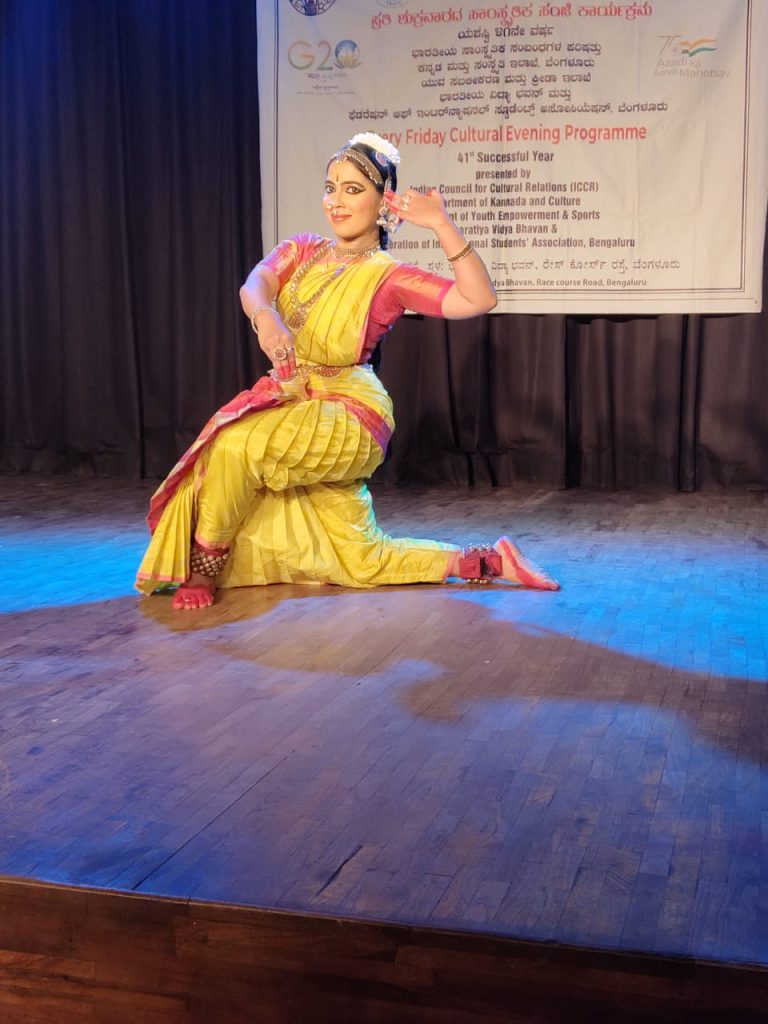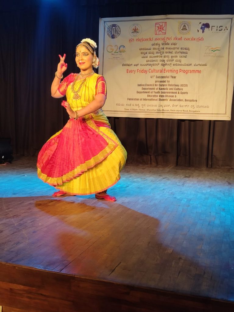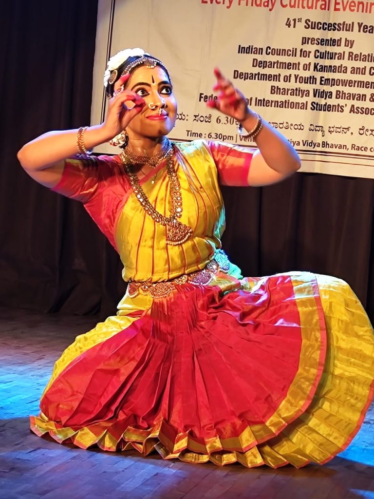 ಭಾರತೀಯ ವಿದ್ಯಾಭವನದ ವೇದಿಕೆಯಲ್ಲಿ ನೃತ್ಯ ಕಲಾವಿದೆ ರಮ್ಯಾ ವರ್ಣ ತನ್ನ ಸೊಗಸಾದ, ಭಾವ ಪುರಸ್ಸರ ನೃತ್ಯಾಭಿನಯದಿಂದ ನೆರೆದ ಕಲಾರಸಿಕರ ಮನಸ್ಸನ್ನು ಸೆಳೆದಳು. ಐಸಿಸಿಆರ್ ಆಯೋಜನೆಯ ಪ್ರತಿ ಶುಕ್ರವಾರದ ಸಾಂಸ್ಕೃತಿಕ ಕಾರ್ಯಕ್ರಮ ಇದಾಗಿತ್ತು. ಗುರು ಗಾಯತ್ರಿ ಚಂದ್ರಶೇಖರ ಇವರ ನುರಿತ ಗರಡಿಯಲ್ಲಿ ತರಬೇತಿ ಪಡೆದ ರಮ್ಯಾ, ಲೀಲಾಜಾಲವಾಗಿ, ನಿರಾಯಾಸದಿಂದ ನರ್ತಿಸುತ್ತ, ಮೊದಲಿನಿಂದ ಕಡೆಯ ಕೃತಿಯವರೆಗೆ ಒಂದೇ ಚೈತನ್ಯ ಪ್ರದರ್ಶಿಸಿದ್ದು ನಿಜಕ್ಕೂ ಸ್ತುತ್ಯಾರ್ಹ. ಸಂಪ್ರದಾಯದಂತೆ ಕಲಾವಿದೆ ‘ಪುಷ್ಪಾಂಜಲಿ’ಯಿಂದ ಶುಭಾರಂಭಿಸಿ, ಗುರು-ಹಿರಿಯರಿಗೆ, ದೇವಾನುದೇವತೆಗಳಿಗೆ ಮತ್ತು ಪ್ರೇಕ್ಷಕರಿಗೆ ನೃತ್ಯ ನಮನಗಳ ಮೂಲಕ ವಂದನೆ ಸಲ್ಲಿಸಿ, ನಂತರ ‘ಗಜವದನ’ ಬೇಡುವೆ’ ಎಂದು ವಿಘ್ನ ನಿವಾರಕನ ವಿವಿಧ ರೂಪ-ವೈಶಿಷ್ಟ್ಯಗಳನ್ನು ತನ್ನ ಸುಂದರ ಆಂಗಿಕಾಭಿನಯದಿಂದ ಸಾಕ್ಷಾತ್ಕರಿಸಿದಳು.