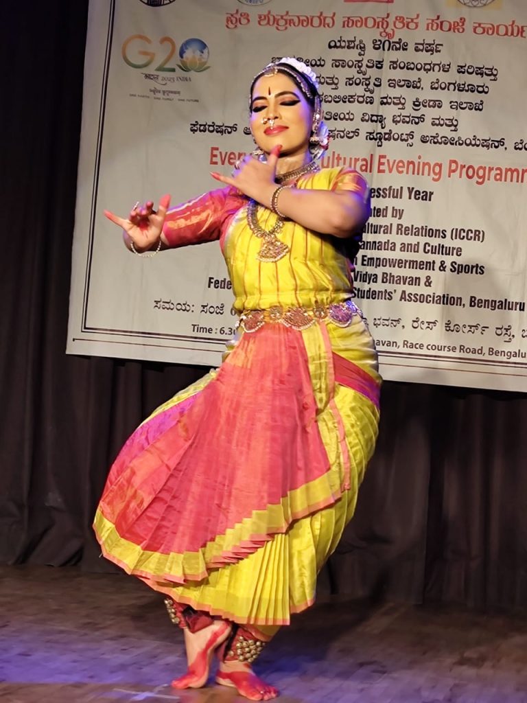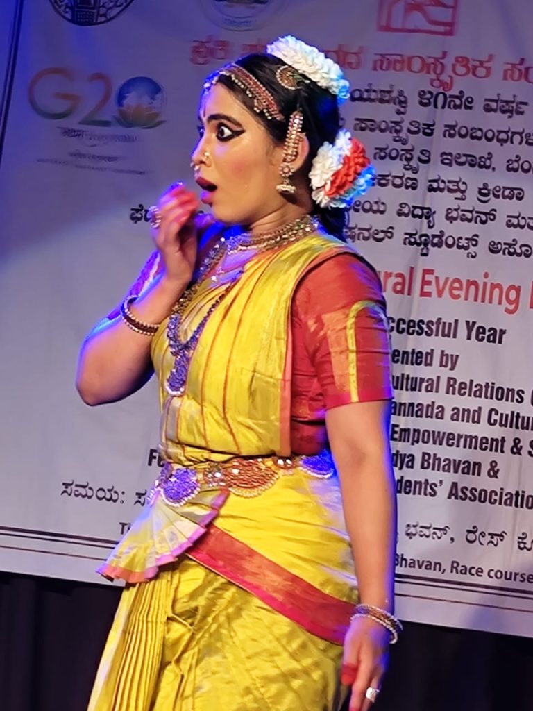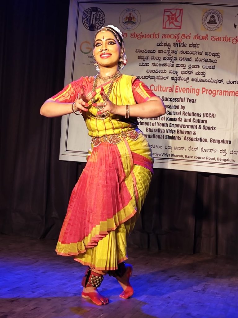 ಕಲಾವಿದೆಯ ಹಸನ್ಮುಖ, ಲವಲವಿಕೆಯ ಚಲನೆಗಳು, ತಾಳ-ಲಯಜ್ಞಾನದ ಹೆಜ್ಜೆಗಳು ಗಮನ ಸೆಳೆದವು. ಮುಂದೆ-ಚಾರುಕೇಶಿ ರಾಗದ ಲಾಲ್ಗುಡಿ ಜಯರಾಮನ್ ರಚನೆಯ ‘ಇನ್ನುಂ ಎನ್ ಮನಂ’ ಅರಿತುಕೊಂಡಿಲ್ಲವೇ ಕೃಷ್ಣಾ ಎಂದು ಅವನಲ್ಲಿ ಅನುರಕ್ತಳಾದ ನಾಯಕಿ, ಅವನ ಅಗಲಿಕೆಯ ವಿರಹ ವೇದನೆಯಿಂದ ಪರಿತಪಿಸುತ್ತ, ತನ್ನಿನಿಯ ಕೃಷ್ಣನಲ್ಲಿ ತನಗಿರುವ ಆಳವಾದ ಅನುರಾಗವನ್ನು ಅಭಿವ್ಯಕ್ತಿಸುತ್ತ, ಆತ್ಮನಿವೇದನೆ ಮಾಡಿಕೊಳ್ಳುವ ‘ವರ್ಣ’ ಮನಮುಟ್ಟಿತು. ಗಂಧರ್ವಲೋಕಕ್ಕೆ ಕೊಂಡೊಯ್ದ ಮೋಹನ ಮುರಳೀನಾದ (ನರಸಿಂಹ ಮೂರ್ತಿ)ದಲ್ಲಿ ಒಡಮೂಡಿದ ಶೃಂಗಾರಭರಿತವಾದ ಈ ಕೃತಿಯನ್ನು ಕಲಾವಿದೆ ತನ್ನ ಸೂಕ್ಷ್ಮಾಭಿನಯದ ಸೊಗಡಿನಿಂದ, ನೃತ್ತಗಳ ಕಲಾನೈಪುಣ್ಯತೆಯಿಂದ, ಮನಮೋಹಕ ಅಭಿನಯದಿಂದ ಪಾತ್ರದಲ್ಲಿ ತನ್ಮಯಳಾಗಿ ನಿರೂಪಿಸಿದ್ದು, ಕಲಾವಿದೆಯ ಅಸ್ಮಿತೆಯಾಗಿತ್ತು. ಗುರು ಗಾಯತ್ರಿಯವರ ಸ್ಫುಟವಾದ, ನಿಖರ ಲಯದ ನಟುವಾಂಗ ಕಲಾವಿದೆಯ ಹೆಜ್ಜೆಗಳಿಗೆ ಕಸುವು ನೀಡಿತ್ತು.