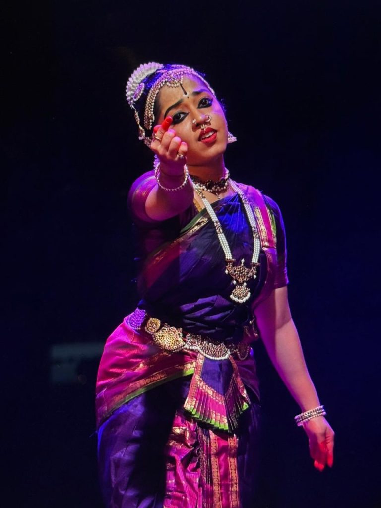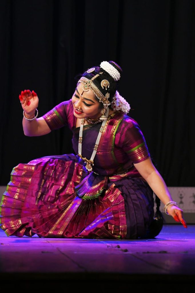 ಕಲಾ ಹಿನ್ನೆಲೆಯಿಂದ ಬಂದ ಅಮೃತಾ ಕಂಪ್ಯೂಟರ್ ಎಂಜಿನಿಯರ್, ಕರ್ನಾಟಕ ಸಂಗೀತ, ಸಿತಾರ್ ವಾದನ ಹಾಗೂ ನೃತ್ಯ ಕಲಿಕೆಯ ಪ್ರತಿಭಾನ್ವಿತ ನೃತ್ಯಾಂಗನೆ. ಈ ಕಾರ್ಯಕ್ರಮವು ಭರತನಾಟ್ಯ ಕಾರ್ಯಕ್ರಮದಲ್ಲಿರಲೇಬೇಕಾದ ಬಂಧಗಳನ್ನು ಒಳಗೊಂಡಿದ್ದವು. ಆರಂಭವು ಗಾಯಕ ಕಾರ್ತಿಕ ಹೆಬ್ಬಾರ್ರವರ ಸುಶ್ರಾವ್ಯವಾದ ಪುಟ್ಟ ‘ಓಂ ಪ್ರಣವಾಕಾರ’ ಶ್ಲೋಕದಿಂದ ಮೊದಲ್ಗೊಂಡು ಹೇಮಾವತಿ ರಾಗ ಆದಿತಾಳದ ಕೆ. ಮುರಲೀಧರ ಉಡುಪಿ ವಿರಚಿತ ಪುಷ್ಪಾಂಜಲಿ ಹಾಗೂ ಗಣಪತಿ ಸ್ತುತಿಯಾಗಿ ಪುರಂದರದಾಸರ ಪಿಳ್ಳಾರಿ ಗೀತೆ ‘ಶ್ರೀ ಗಣನಾಥ’ ಪದವು ಚಿಕ್ಕ ಹಾಗೂ ಚೊಕ್ಕ ಸಂಚಾರಿ ಮತ್ತು ಸ್ವರಗಳ ಸಹಿತ ಹೊಸತನದಲ್ಲಿ ಪ್ರದರ್ಶಿಸಲ್ಪಟ್ಟಿತು. ತಂಜಾವೂರ್ ಸಹೋದರರು ರಚಿಸಿದ ಶ್ರೀರಾಗ ಖಂಡಛಾಪು ತಾಳದ ಜತಿ ಸ್ವರವು ಚಿಕ್ಕಜತಿಗಳು, ಮೈಯಡವು ಶೊಲ್ಲುಕಟ್ಟು ಸ್ವರಗಳಿಂದ ಅಮೃತಾಳ ನೃತ್ತದ ಅಂದದ ಅರಿವನ್ನು ಮೂಡಿಸಿತು. ಇಲ್ಲಿ ಜತಿಗಳನ್ನು ಬಾಯಲ್ಲಿ ನಟ್ಟುವಾಂಗದೊಡನೆ ಹೇಳುವುದು ಇತ್ತೀಚೆಗಿನ ಬೆಳವಣಿಗೆಯೋ ಏನೋ? ಮುಂದೆ ಅಪರೂಪದ ‘ಕಾಳಿಕೌತುವಂ’ ಕಾಳಿಯ ರೂಪದ ಭೀಕರತೆಯ ವರ್ಣನೆ, ಅವಳ ರೌದ್ರನರ್ತನ, ಶಿವನ ಊರ್ಧ್ವ ತಾಂಡವದ ಝಲಕ್ ಗಳು ಗಟ್ಟಿಯಾದ ಹಿಮ್ಮೇಳದ ನೆರವಿನಿಂದ ವೀರರಸವನ್ನು ಪ್ರತಿಪಾದಿಸಿದ್ದಲ್ಲದೆ, ಸುಂದರ ಭಂಗಿಗಳು, ಉತ್ಪ್ಲವನಗಳಿಗೆ ಎಡೆ ಮಾಡಿಕೊಟ್ಟಿತು.
