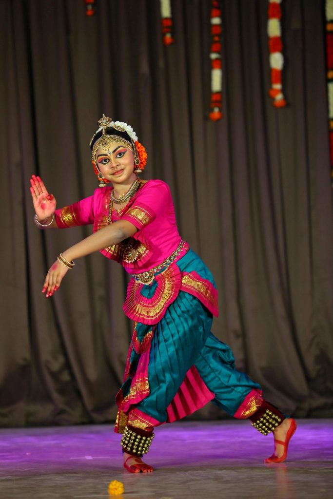 ಸಾಂಪ್ರದಾಯಕ ‘ಪುಷ್ಪಾಂಜಲಿ’ಯಿಂದ ಕಲಾವಿದೆ ಪ್ರಸ್ತುತಿ ಆರಂಭಿಸಿದಳು. ರಂಗಾಕ್ರಮಣದಲ್ಲಿ ದೇವಾನುದೇವತೆಗಳಿಗೆ, ಗುರು-ಹಿರಿಯರಿಗೆ, ಭೂಮಾತೆಗೆ, ವಾದ್ಯಗೋಷ್ಠಿ ಮತ್ತು ಕಲಾರಸಿಕರಿಗೆ ನಮ್ರಭಾವದಿಂದ ನೃತ್ತ ನಮನ ಸಲ್ಲಿಸಿ, ಚಿಗರೆ ಮರಿಯಂತೆ ಮಿಂಚಿನ ಸಂಚಾರದಲ್ಲಿ ವಿಶಿಷ್ಟ ವಿನ್ಯಾಸದ ನೃತ್ತಗಳನ್ನು ಸಮರ್ಪಿಸಿದಳು. ಗುರು ಜಯಶ್ರೀ ರವಿ ಅವರ ಉತ್ತಮ ನೃತ್ಯಶಿಕ್ಷಣಕ್ಕೆ ಸಾಕ್ಷಿಯಾಯಿತು. ಕಲಾವಿದೆಯ ಆತ್ಮವಿಶ್ವಾಸದ ಪ್ರಥಮ ನೂಪುರಾರ್ಪಣೆ. ಅನಂತರ – ಶ್ರೀ ಪುರಂದರದಾಸರ ’ಗಜವದನ ಬೇಡುವೆ ಗೌರೀ ತನಯ’ ಎಂಬ ಗಣೇಶಸ್ತುತಿಯನ್ನು ಆರಾಧನಾ, ಗಣಪನ ಮೋಹಕ ಭಂಗಿಗಳ ಪ್ರದರ್ಶನದಿಂದ, ಸಂಕ್ಷಿಪ್ತ ಸಂಚಾರಿಗಳ ಅಭಿನಯದಿಂದ ಮುದ ನೀಡಿದಳು.