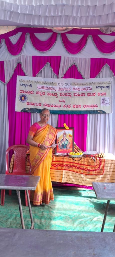 ಕಳಸ : ಕನ್ನಡ ಸಾಹಿತ್ಯ ಪರಿಷತ್ತು ಮಹಿಳಾ ಘಟಕ ಮತ್ತು ಕರ್ಣಾಟಕ ಲೇಖಕಿಯರ ಸಂಘ ಕಳಸ ಇದರ ವತಿಯಿಂದ ನಾಗಮಣಿ ಪೂರ್ಣಚಂದ್ರ ಇವರ ಆಶ್ರಯದಲ್ಲಿ ‘ಮನೆಯಂಗಳದಲ್ಲಿ ಮಹಿಳೆಯರ ದಸರಾ ಸಂಭ್ರಮ’ವನ್ನು ದಿನಾಂಕ 02 ಅಕ್ಟೋಬರ್ 2025ರಂದು ಕಳಸದ ಹಂದಿಗೋಡು ಮನೆಯಲ್ಲಿ ಹಮ್ಮಿಕೊಳ್ಳಲಾಗಿತ್ತು. ಈ ಸಂದರ್ಭದಲ್ಲಿ ಇತ್ತೀಚೆಗೆ ನಮ್ಮನ್ನು ಅಗಲಿದ ಹಿರಿಯ ಸಾಹಿತಿ ಶ್ರೀ ಎಸ್.ಎಲ್. ಭೈರಪ್ಪ ಇವರಿಗೆ ಶ್ರದ್ಧಾಂಜಲಿ ಸಲ್ಲಿಸಿದ್ದು, ಶ್ರೀಮತಿ ಮಮ್ತಾಜ್ ಬೇಗಂ ಇವರು ಶ್ರೀಯುತರ ಸಾಧನೆಗಳ ಕುರಿತು ಮಾತನಾಡಿದರು ಹಾಗೂ ಮಹಾತ್ಮ ಗಾಂಧಿ ಮತ್ತು ಲಾಲ್ ಬಹದ್ದೂರ್ ಶಾಸ್ತ್ರಿಯವರ ಜನ್ಮ ದಿನದ ಪ್ರಯುಕ್ತ ಈ ಹಿರಿಯ ಚೇತನಗಳಿಗೆ ಗೌರವ ಪೂರ್ವಕ ಪ್ರಣಾಮಗಳನ್ನು ಸಲ್ಲಿಸಲಾಯಿತು.