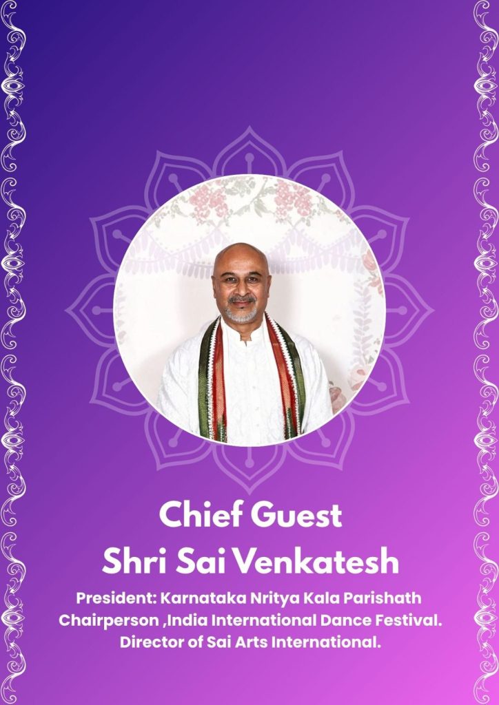 ಕಾರ್ಯಕ್ರಮದ ಮುಖ್ಯ ಅತಿಥಿಗಳಾಗಿ ಸಾಯಿ ವೆಂಕಟೇಶ್ – ಅಧ್ಯಕ್ಷರು – ಕರ್ನಾಟಕ ನೃತ್ಯ ಕಲಾ ಪರಿಷತ್ ಮತ್ತು ಲೇಖಕಿ, ರಂಗಕರ್ಮಿ, ಅಂಕಣಕಾರ್ತಿ ಹಾಗೂ ನೃತ್ಯ- ನಾಟಕ ವಿಮರ್ಶಕಿ ಲಿಪಿಪ್ರಾಜ್ಞೆ ವೈ.ಕೆ. ಸಂಧ್ಯಾ ಶರ್ಮ ಭಾಗವಹಿಸಲಿದ್ದಾರೆ. ಮಿಸ್ ಇಂಡಿಯಾ ಸಿನಿಮಾ ಕ್ವೀನ್ -2025 ರೂಪದರ್ಶಿ, ನಟಿ ಅಲುಮ್ನಿ ವಿಶೇಷ ಅತಿಥಿ. ಆಯೋಜನೆ ಮತ್ತು ಸಂಘಟನೆ ನೃತ್ಯದರ್ಪಣದ ವೀಣಾ ಭಟ್- ಅರ್ಟಿಸ್ಟಿಕ್ ಡೈರೆಕ್ಟರ್ ಮತ್ತು ಅಂಜಲಿ ರಾಮಣ್ಣ – ಲೇಖಕಿ, ಲಾಯರ್, ಅಂಕಣಕಾರ್ತಿ. ರಸಾನುಭವ ನೀಡುವ ವಿವಿಧ ನೃತ್ಯಶೈಲಿಗಳ ವಿಹಂಗಮ ವೀಕ್ಷಣೆಗೆ ಸರ್ವರಿಗೂ ಆದರದ ಸ್ವಾಗತ.