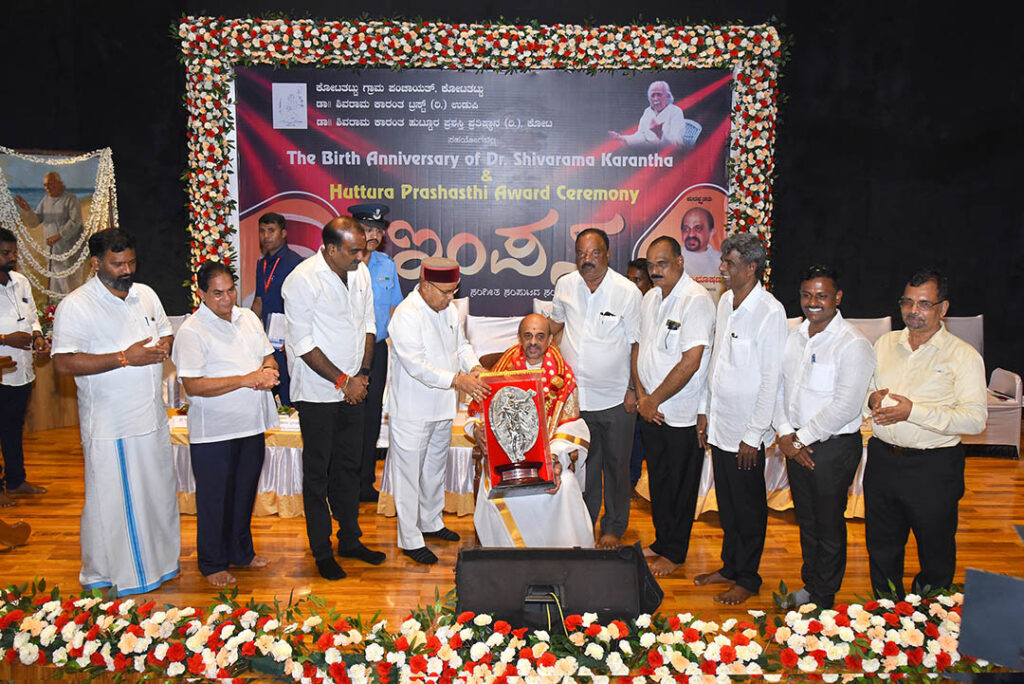 ಕೋಟ : ಕೋಟದ ಡಾ.ಶಿವರಾಮ ಕಾರಂತ ಥೀಂ ಪಾರ್ಕ್ ಸಭಾಂಗಣದಲ್ಲಿ ಕೋಟತಟ್ಟು ಗ್ರಾಮ ಪಂಚಾಯತ್, ಡಾ. ಶಿವರಾಮ ಕಾರಂತ ಟ್ರಸ್ಟ್, ಡಾ. ಶಿವರಾಮ ಕಾರಂತ ಹುಟ್ಟೂರ ಪ್ರಶಸ್ತಿ ಪ್ರತಿಷ್ಠಾನ ಇದರ ಸಹಯೋಗದಲ್ಲಿ ದಿನಾಂಕ 10-10-2023ರಂದು ಡಾ. ಶಿವರಾಮ ಕಾರಂತ ಜನ್ಮ ದಿನೋತ್ಸವ ಹಾಗೂ ‘ಕಾರಂತ ಹುಟ್ಟೂರ ಪ್ರಶಸ್ತಿ’ ಪ್ರದಾನ ಸಮಾರಂಭ ‘ಇಂಪನ’ ಕಾರ್ಯಕ್ರಮವನ್ನು ರಾಜ್ಯಪಾಲ ಥಾವರ್ಚಂದ್ ಗೆಹ್ಲೋಟ್ ಇವರು ಉದ್ಘಾಟಿಸಿ, ಸಂಗೀತಗಾರ ಡಾ. ವಿದ್ಯಾಭೂಷಣ ಅವರಿಗೆ ‘ಕಾರಂತ ಹುಟ್ಟೂರ ಪ್ರಶಸ್ತಿ’ ಪ್ರದಾನ ಮಾಡಿ ಮಾತನಾಡುತ್ತಾ “ಶಿವರಾಮ ಕಾರಂತರು ತಮ್ಮ ಜೀವನದಲ್ಲಿ ಕಲೆ, ಸಾಹಿತ್ಯ, ಪರಿಸರ, ಸಮಾಜಸೇವೆ ಸೇರಿದಂತೆ ಹಲವಾರು ಕ್ಷೇತ್ರಗಳಲ್ಲಿ ಸಾಧನೆ ಮಾಡಿದ್ದು, ಅವು ಸಮಾಜಕ್ಕೆ ನೀಡಿದ ಮಾರ್ಗದರ್ಶನವಾಗಿದೆ. ಭಾರತೀಯ ಸಂಸ್ಕೃತಿ, ಧರ್ಮ, ಸಂಸ್ಕಾರದೊಂದಿಗೆ ಮಾನವೀಯ ಗುಣವುಳ್ಳ ಜನರು ತಯಾರಾದರೆ ಭಾರತ ವಿಶ್ವ ಗುರುವಾಗಲು ಸಾಧ್ಯ. ಕಲೆ, ಧರ್ಮ, ಸಂಸ್ಕೃತಿಯ ಸಮನ್ವಯದ ಅತ್ಯಗತ್ಯವಿದ್ದು, ತುಳುನಾಡಿನ ಸಮೃದ್ಧ ವಿರಾಸತ್ ಜಗತ್ತಿಗೆ ತಲುಪಬೇಕು. ಕಲೆ, ಸಾಂಸ್ಕೃತಿಕ ವಿರಾಸತ್ ಭಾರತದ ಜೀವಾಳ, ಈ ನಿಟ್ಟಿನಲ್ಲಿ ಮಕ್ಕಳಿಗೆ ಪ್ರೇರಣೆ ನೀಡಬೇಕು. ಕಾರಂತರು ನಡೆದಾಡುವ ವಿಶ್ವಕೋಶವಾಗಿದ್ದರು. ಆಧುನಿಕ ಠಾಗೋರ್ ಎಂದೆನಿಸಿದ ಅವರು ತುರ್ತು ಪರಿಸ್ಥಿತಿ ಸಮಯದಲ್ಲಿ ಪದ್ಮಭೂಷಣ ಹಿಂದಿರುಗಿಸಿ ದೇಶಭಕ್ತಿ ಮೆರೆದ ಮಹಾನ್ ವ್ಯಕ್ತಿ, ಅವರು ಹಾಕಿಕೊಟ್ಟ ಹಾದಿಯಲ್ಲಿ ಮುಂದಿನ ಪೀಳಿಗೆಯನ್ನು ಮುನ್ನಡೆಸಬೇಕು. ಗಾಂಧೀಜಿ ಸಿದ್ಧಾಂತದಿಂದ ಪ್ರಭಾವಿತರಾದ ಕಾರಂತರು ಕಾರ್ನಾಡ್ ಸದಾಶಿವ ರಾವ್ ನೇತೃತ್ವದಲ್ಲಿ ಖಾದಿ ಸ್ವದೇಶಿ ಚಳವಳಿಯಲ್ಲಿ ನಿರತರಾಗಿದ್ದು ಎಲ್ಲರಿಗೂ ಪ್ರೇರಣಾದಾಯಕ” ಎಂದು ಹೇಳಿದರು. ಈ ಸಂದರ್ಭದಲ್ಲಿ ರಾಜ್ಯಪಾಲರಿಗೆ ಕರಾವಳಿಯ ಗಂಡುಕಲೆಯ ಯಕ್ಷ ಕೀರಿಟ ಧರಿಸಿ ಗೌರವಿಸಲಾಯಿತು.