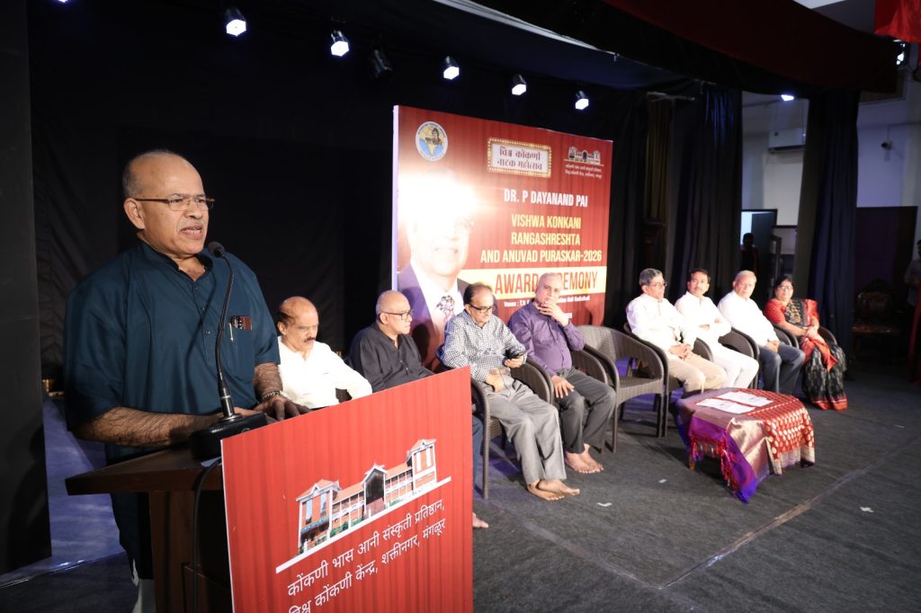 ಮಂಗಳೂರು : ವಿಶ್ವ ಕೊಂಕಣಿ ಕೇಂದ್ರದ ಆಶ್ರಯದಲ್ಲಿ ವಿಶ್ವ ಕೊಂಕಣಿ ನಾಟಕ ಮಹೋತ್ಸವ ಹಾಗೂ ಪ್ರತಿಷ್ಠಿತ ಡಾ. ಪಿ. ದಯಾನಂದ ಪೈ ವಿಶ್ವ ಕೊಂಕಣಿ ರಂಗಶ್ರೇಷ್ಠ ಹಾಗೂ ಅನುವಾದ ಪ್ರಶಸ್ತಿ ಪ್ರದಾನ ಕಾರ್ಯಕ್ರಮವು ದಿನಾಂಕ 01 ಫೆಬ್ರವರಿ 2026ರಂದು ಕೊಡಿಯಾಲ್ ಬೈಲ್ ನ ಟಿ.ವಿ. ರಮಣ ಪೈ ಸಭಾಂಗಣದಲ್ಲಿ ನಡೆಯಿತು.