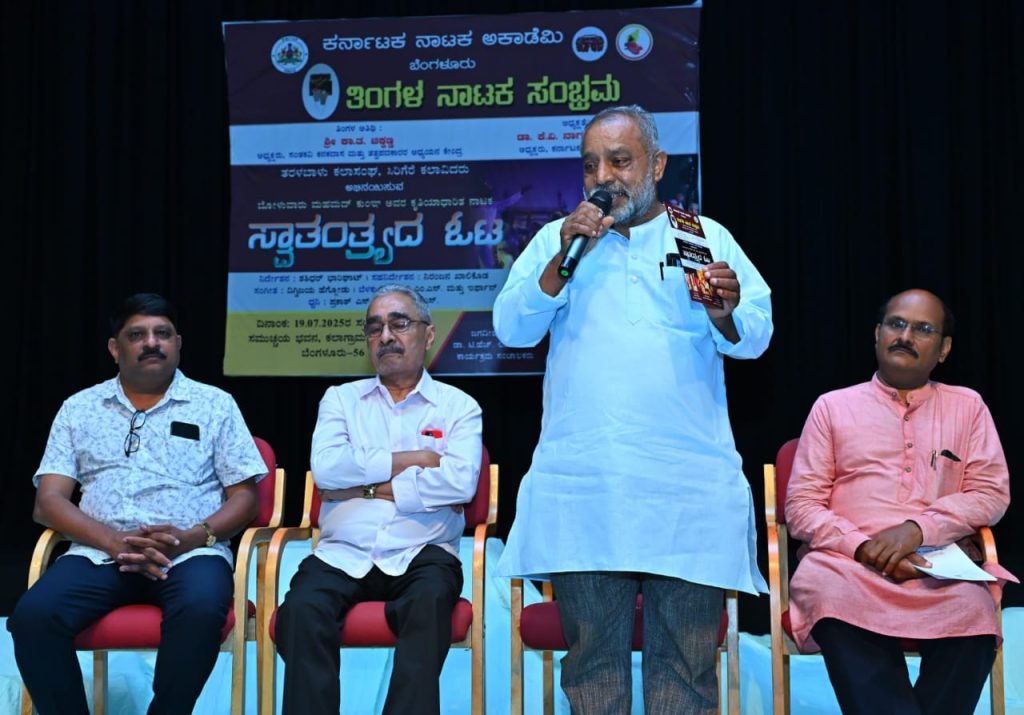 ಬೆಂಗಳೂರು : ಕರ್ನಾಟಕ ನಾಟಕ ಅಕಾಡೆಮಿ ಬೆಂಗಳೂರು ಇದರ ವತಿಯಿಂದ ಆಯೋಜಿಸಿದ್ದ ‘ತಿಂಗಳ ನಾಟಕ ಸಂಭ್ರಮ’ದಲ್ಲಿ ಬೊಳುವಾರು ಮುಹಮ್ಮದ್ ಕುಂಞ ಅವರ ಕೃತಿಯಾಧಾರಿತ ‘ಸ್ವಾತಂತ್ರ್ಯದ ಓಟ’ ಎಂಬ ನಾಟಕ ಪ್ರದರ್ಶನವು ದಿನಾಂಕ 19 ಜುಲೈ 2025ರಂದು ಬೆಂಗಳೂರಿನ ಮಲ್ಲತ್ತಹಳ್ಳಿಯ ಕಲಾಗ್ರಾಮದ ಸಮುಚ್ಚಯ ಭವನದಲ್ಲಿ ನಡೆಯಿತು.