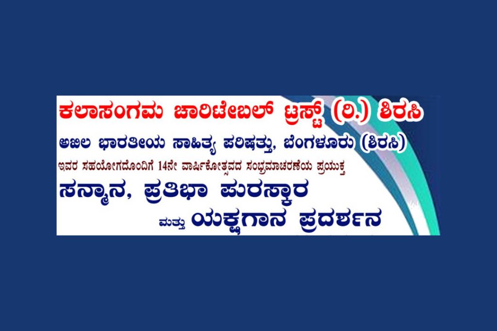 ಶಿರಸಿ : ಕಲಾಸಂಗಮ ಚಾರಿಟೇಬಲ್ ಟ್ರಸ್ಟ್ (ರಿ.) ಶಿರಸಿ ಮತ್ತು ಅಖಿಲ ಭಾರತೀಯ ಸಾಹಿತ್ಯ ಪರಿಷತ್ತು ಬೆಂಗಳೂರು ಇವರ ಸಹಯೋಗದೊಂದಿಗೆ 14ನೇ ವಾರ್ಷಿಕೋತ್ಸವದ ಸಂಭ್ರಮಾಚರಣೆಯ ಪ್ರಯುಕ್ತ ಸನ್ಮಾನ, ಪ್ರತಿಭಾ ಪುರಸ್ಕಾರ ಮತ್ತು ಯಕ್ಷಗಾನ ಪ್ರದರ್ಶನವನ್ನು ದಿನಾಂಕ 01 ಜೂನ್ 2025ರಂದು ಸಂಜೆ 4-00 ಗಂಟೆಗೆ ಶಿರಸಿಯ ನೆಮ್ಮದಿ ಆವರಣದ ರಂಗಧಾಮದಲ್ಲಿ ಹಮ್ಮಿಕೊಳ್ಳಲಾಗಿದೆ.