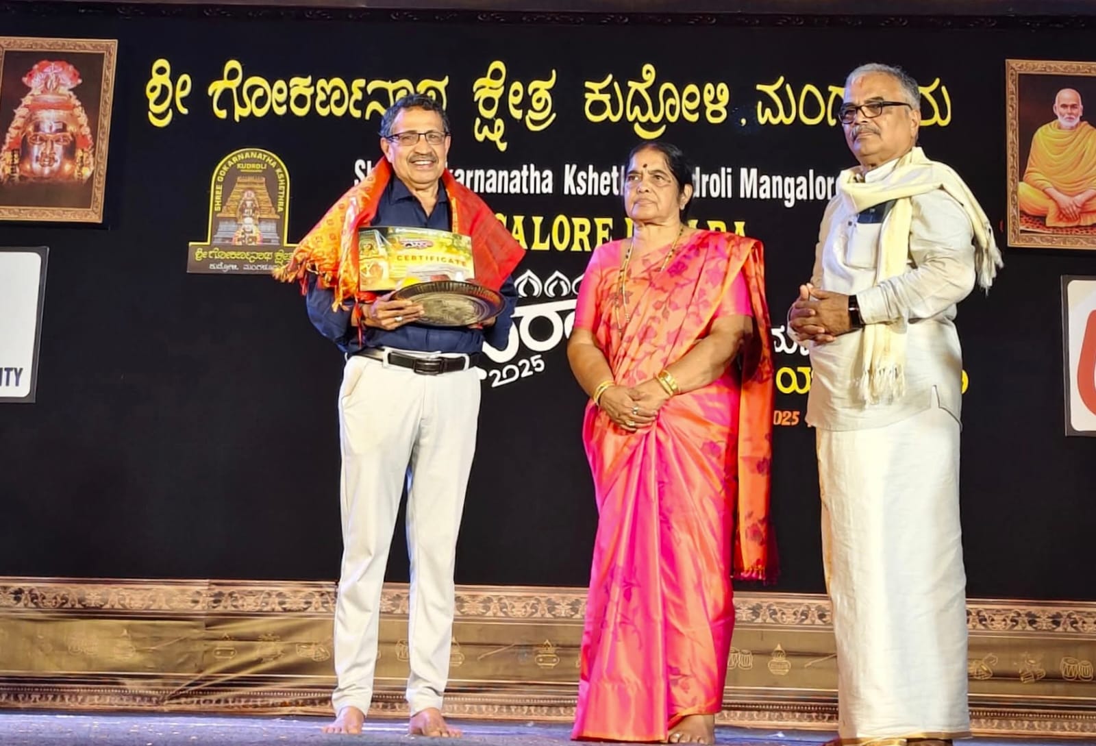 ಮಂಗಳೂರು : ಕುದ್ರೋಳಿಯಲ್ಲಿ ದಿನಾಂಕ 01 ಅಕ್ಟೋಬರ್ 2025ರಂದು ಮಂಗಳೂರು ದಸರಾ ಮಹೋತ್ಸವದ ಸಂದರ್ಭದಲ್ಲಿ ಏರ್ಪಡಿಸಿದ್ದ ಕನ್ನಡ ಹಾಗೂ ತುಳು ಭಾಷೆಯ ದಸರಾ ಕವನ ಸ್ಪರ್ಧೆಯಲ್ಲಿ ಕನ್ನಡ ವಿಭಾಗದಲ್ಲಿ ದ್ವಿತೀಯ ಸ್ಥಾನ ವಿಜೇತರಾದ ಡಾ. ಸುರೇಶ ನೆಗಳಗುಳಿಯವರನ್ನು ಶಾಲು ಫಲ ಪುಷ್ಪ ನೆನಪಿನ ಕಾಣಿಕೆ ಸಹಿತವಾಗಿ ಗೌರವಿಸಲಾಯಿತು. ಇದೇ ವೇಳೆ ತುಳು ಕವನ ಪ್ರಥಮ ಸ್ಥಾನ ವಿಜೇತ ಚೇತನ ವರ್ಕಾಡಿಯವರನ್ನು ಗೌರವಿಸಲಾಯಿತು.