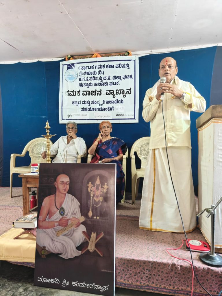 ಪುತ್ತೂರು : ಕರ್ನಾಟಕ ಗಮಕ ಕಲಾ ಪರಿಷತ್ತು ಬೆಂಗಳೂರು, ದ.ಕ.ಜಿಲ್ಲೆ ಮತ್ತು ಪುತ್ತೂರು ತಾಲೂಕು ಘಟಕ ಹಾಗೂ ಕರ್ನಾಟಕ ಸಂಘದ ಸಹಯೋಗದೊಂದಿಗೆ ಕುಮಾರವ್ಯಾಸ ಜಯಂತಿ ಪ್ರಯುಕ್ತ ಗಮಕ ವಾಚನ- ವ್ಯಾಖ್ಯಾನ ಕಾರ್ಯಕ್ರಮವನ್ನು ದಿನಾಂಕ 04 ಜನವರಿ 2026ನೇ ಭಾನುವಾರದಂದು ಪುತ್ತೂರಿನ ಅನುರಾಗ ವಠಾರದ ಸಭಾಂಗಣದಲ್ಲಿ ಹಮ್ಮಿಕೊಳ್ಳಲಾಯಿತು.