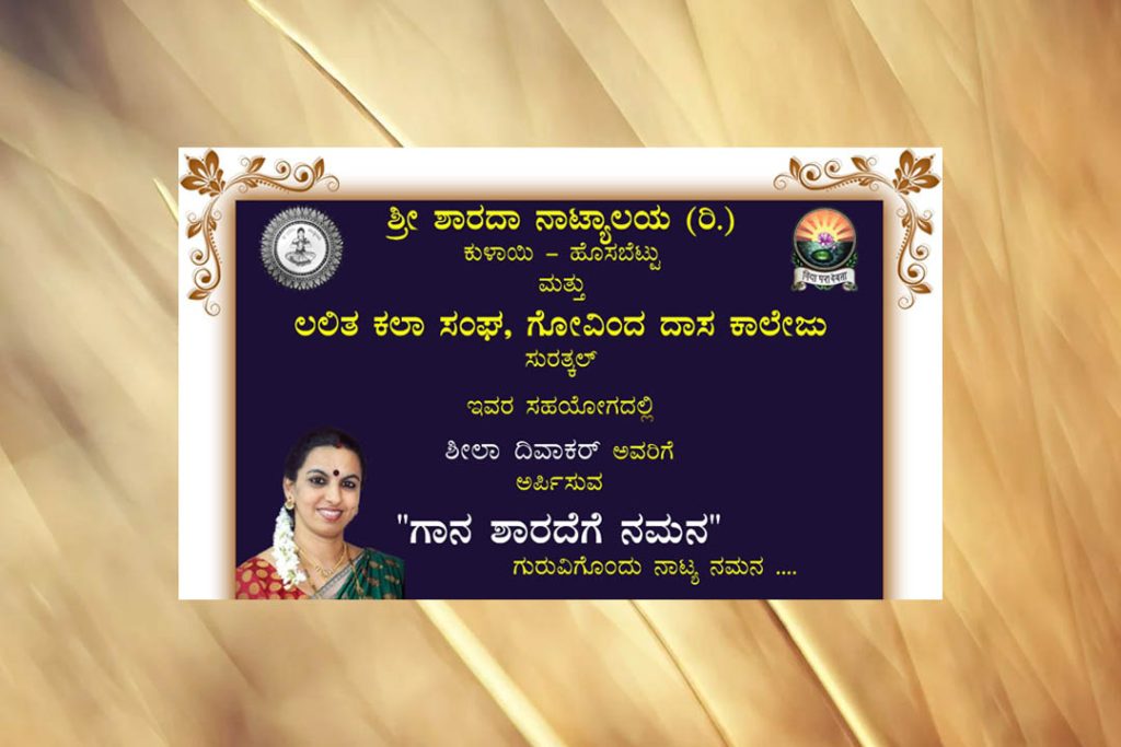 ಮಂಗಳೂರು : ಕುಳಾಯಿ ಹೊಸಬೆಟ್ಟು ಇಲ್ಲಿರುವ ಶ್ರೀ ಶಾರದಾ ನಾಟ್ಯಾಲಯದ ವತಿಯಿಂದ ಲಲಿತ ಕಲಾ ಸಂಘ ಗೋವಿಂದ ದಾಸ ಕಾಲೇಜು ಸುರತ್ಕಲ್ ಇವರ ಸಹಯೋಗದೊಂದಿಗೆ ವಿದುಷಿ ಶೀಲಾ ದಿವಾಕರ್ ಇವರಿಗೆ ‘ಗಾನ ಶಾರದೆಗೆ ನಮನ’ ಗುರುವಿ ಗೊಂದು ನಾಟ್ಯ ನಮನ ಕಾರ್ಯಕ್ರಮವನ್ನು ದಿನಾಂಕ 26 ಜನವರಿ 2025ರಂದು ಸಂಜೆ 5-30 ಗಂಟೆಗೆ ಸುರತ್ಕಲ್ಲಿನ ಗೋವಿಂದ ದಾಸ ಕಾಲೇಜಿನ ರಂಗ ಮಂದಿರದಲ್ಲಿ ಹಮ್ಮಿಕೊಳ್ಳಲಾಗಿದೆ.