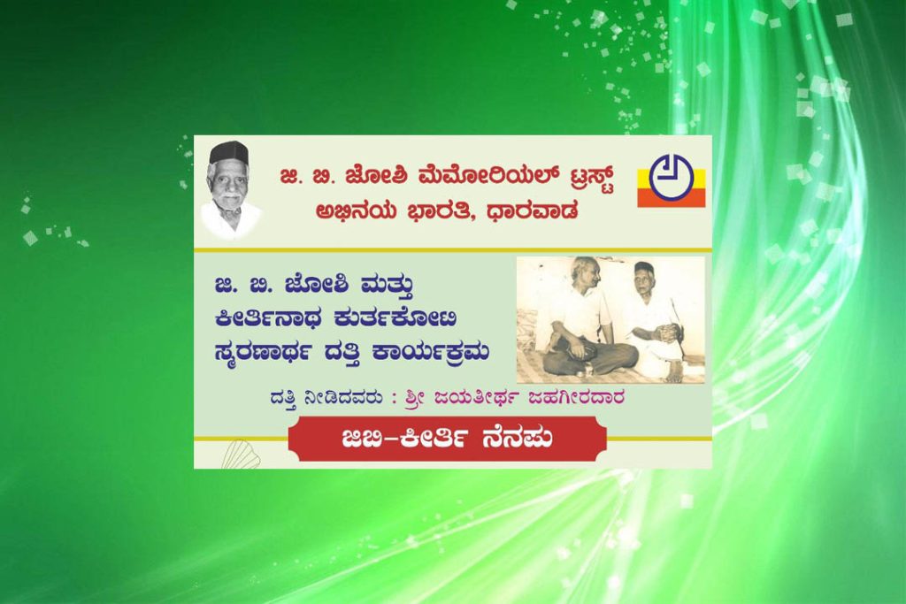 ಜುಲೈ 29 ಜಿ.ಬಿ. ಜೋಶಿಯವರ 120ನೇ ಹುಟ್ಟುಹಬ್ಬ ಹಾಗೂ ಜುಲೈ 31 ಶ್ರೀ ಕೀರ್ತಿನಾಥ ಕುರ್ತುಕೋಟಿಯವರ 21ನೇ ಪುಣ್ಯತಿಥಿ. ತಮಗೆಲ್ಲ ಗೊತ್ತಿರುವಂತೆ ಜಿ.ಬಿ. ಜೋಶಿಯವರ ಶತಮಾನೋತ್ಸವ ಸಂದರ್ಭದಲ್ಲಿ ಆ ಕಾರ್ಯಕ್ರಮದ ಜವಾಬ್ದಾರಿಗಳನ್ನು ನಿರ್ವಹಿಸಿ ಮಾರನೇ ದಿನವೇ ಅವರೀರ್ವರ ಅವಿನಾಭಾವ ಸಂಬಂಧದ ಸಂಕೇತವೆಂಬಂತೆ ಕೀರ್ತಿಯವರು ನಮ್ಮನ್ನು ಅಗಲಿದ್ದರು. ಇವರಿಬ್ಬರ ಪ್ರೇರಣಾದಾಯಕ ವ್ಯಕ್ತಿತ್ವದ ವಿವಿಧ ಮಗ್ಗಲುಗಳನ್ನು ಅರಿಯಲು ವಿಶೇಷ ಕಾರ್ಯಕ್ರಮವಾಗಿ ‘ಜಿಬಿ-ಕೀರ್ತಿ ನೆನಪು’ ಒಂದನ್ನು ಆಯೋಜಿಸಲಾಗಿದೆ.