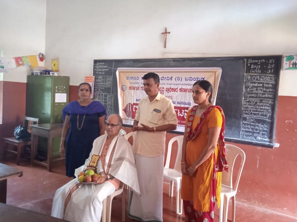 ಬದಿಯಡ್ಕ : ಕರ್ನಾಟಕ ಗಡಿ ಪ್ರದೇಶ ಅಭಿವೃದ್ಧಿ ಪ್ರಾಧಿಕಾರದ ಸಹಯೋಗದಲ್ಲಿ ರಂಗಸಿರಿ ಗ್ರಾಮಪರ್ಯಟನೆಯ 7ನೇ ಕಾರ್ಯಕ್ರಮ ದಿನಾಂಕ 17-09-2023ರ ಭಾನುವಾರ ಬದಿಯಡ್ಕದ ಸಂತ ಬಾರ್ತಲೋಮಿಯ ಅನುದಾನಿತ ಹಿರಿಯ ಪ್ರಾಥಮಿಕ ಶಾಲೆಯಲ್ಲಿ ನಡೆಯಿತು.