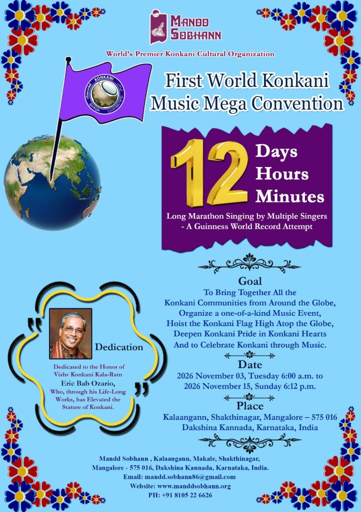 2008ರಲ್ಲಿ, 1711 ಗಾಯಕರ ಮೂಲಕ 645 ಹಾಡುಗಳಿಂದ, 40 ಗಂಟೆಗಳಷ್ಟು ಸುದೀರ್ಘ ಅವಧಿಯ ಸಮೂಹ ಗಾಯನದ ಒಂದು ಗಿನ್ನೆಸ್ ದಾಖಲೆಯನ್ನು ತನ್ನ ಮುಡಿಗೇರಿಸಿಕೊಂಡ ಮಾಂಡ್ ಸೊಭಾಣ್ ಈಗ ಇನ್ನೊಂದು ದಾಖಲೆಗೆ ಸಜ್ಜಾಗುತ್ತಿದೆ. ದಿನಾಂಕ 03 ನವೆಂಬರ್ 2026ರಿಂದ – 15 ನವೆಂಬರ್ 2026ರವರೆಗೆ ಮಂಗಳೂರಿನಲ್ಲಿ, ಉದ್ದೇಶಿತ ಪ್ರಥಮ ವಿಶ್ವ ಕೊಂಕಣಿ ಸಂಗೀತ ಸಮಾವೇಶದಲ್ಲಿ 12 ದಿನ, 12 ಗಂಟೆ ಮತ್ತು 12 ನಿಮಿಷಗಳ (ಸುಮಾರು 300 ಗಂಟೆ 12 ನಿಮಿಷ) ನಿರಂತರ ಸಮೂಹ ಗಾಯನದ ನೂತನ ದಾಖಲೆಗಾಗಿ ಭರದ ತಯಾರಿ ನಡೆಯುತ್ತಿದೆ. ಈ ದಾಖಲೆಗಾಗಿ 5400ಕ್ಕೂ ಮಿಗಿಲು ಗಾಯಕರು ಹಾಗೂ 5400 ಕೊಂಕಣಿ ಹಾಡುಗಳು ಬೇಕಾಗುತ್ತವೆ. ತನ್ನ ಜೀವಿತಾವಧಿಯ ಕೆಲಸಗಳಿಂದ ಕೊಂಕಣಿಯ ಬಾಳ್ವಿಕೆಯನ್ನು ಹೆಚ್ಚಿಸಿದ ದಿ. ಎರಿಕ್ ಒಝೇರಿಯೊ ಇವರ ಗೌರವಾರ್ಥ ಈ ದಾಖಲೆಯ ಪ್ರಯತ್ನ ನಡೆಯಲಿದೆ. ಇದಲ್ಲದೇ ಕೊಂಕಣಿ ಸಂಗೀತ ನಡೆದು ಬಂದ ದಾರಿಯ ಬಗ್ಗೆ, ವಿವಿಧ ಸಂಗೀತ ಸಂಪ್ರದಾಯಗಳ ಬಗ್ಗೆ ವಿಷಯ ಪರಿಣಿತರು ಪ್ರಬಂಧ ಮಂಡಿಸಲಿರುವರು. ಕೊಂಕಣಿ ಸಂಗೀತಕ್ಕೆ ಮಹತ್ತರ ಕೊಡುಗೆ ನೀಡಿದ ಮಹನೀಯರನ್ನು ಗೌರವಿಸಲಾಗುವುದು.