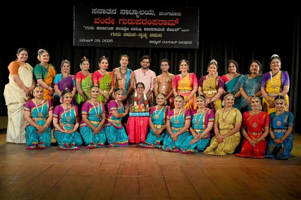 ಮಂಗಳೂರು : ಸನಾತನ ನಾಟ್ಯಾಲಯದ ವತಿಯಿಂದ ನೃತ್ಯಗುರು ವಿದುಷಿ ಶಾರದಾಮಣಿ ಶೇಖರ್ ಇವರಿಗೆ ಗುರುನಮನ ಮಾಡುವ ‘ವಂದೇ ಗುರುಪರಂಪರಾಮ್’ ಎಂಬ ಕಾರ್ಯಕ್ರಮವು ದಿನಾಂಕ 29 ನವೆಂಬರ್ 2025ರಂದು ಮಂಗಳೂರಿನ ಕುದ್ಮುಲ್ ರಂಗರಾವ್ ಪುರಭವನದಲ್ಲಿ ನಡೆಯಿತು.