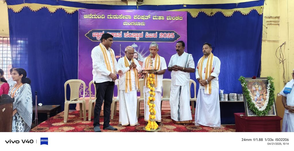 ಮಂಗಳೂರು : ಆನೆಗುಂದಿ ಗುರುಸೇವಾ ಪರಿಷತ್ ಮಹಾಮಂಡಲ,ಮಂಗಳೂರು ಶಾಖೆಯು ಆಯೋಜಿಸಿರುವ “ಜ್ಞಾನ ವಿಕಾಸ ಸಂಸ್ಕಾರ ಶಿಬಿರ -2025 ಇದರ ಉದ್ಘಾಟನಾ ಸಮಾರಂಭವು ದಿನಾಂಕ 21 ಏಪ್ರಿಲ್ 2025ರಂದು ಮಂಗಳೂರು ಶ್ರೀ ಕಾಳಿಕಾಂಬಾ ವಿನಾಯಕ ದೇವಸ್ಥಾನದ ಪಟ್ಟೆ ಲಿಂಗಪ್ಪಾಚಾರ್ಯ ಕಲ್ಯಾಣ ಮಂಟಪದಲ್ಲಿ ನಡೆಯಿತು.