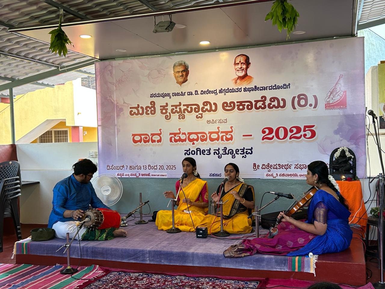 ಸುರತ್ಕಲ್ : ಮಣಿ ಕೃಷ್ಣಸ್ವಾಮಿ ಅಕಾಡೆಮಿ (ರಿ.) ಇದರ ವತಿಯಿಂದ ಶ್ರೀ ವಿಶ್ವೇಶತೀರ್ಥ ಸಭಾಂಗಣದಲ್ಲಿ ಆಯೋಜಿಸಿರುವ ‘ರಾಗ ಸುಧಾರಸ -2025’ ಸಂಗೀತ ಮತ್ತು ನೃತ್ಯ ಉತ್ಸವ ಕಾರ್ಯಕ್ರಮವು ದಿನಾಂಕ 07 ಡಿಸೆಂಬರ್ 2025ರಂದು ಉದ್ಘಾಟನೆಗೊಂಡಿತು.