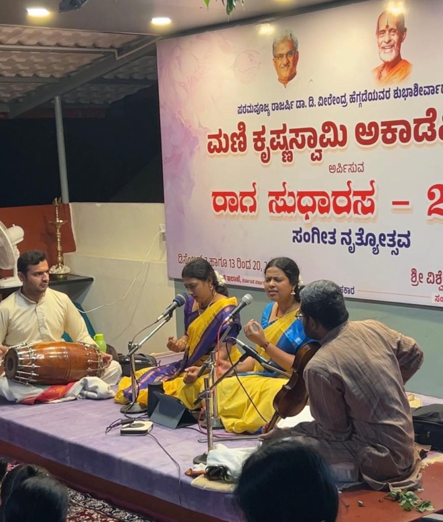 ಶ್ರೀವರಧಾ ಪಟ್ಟಾಜೆ ಕಾಸರಗೋಡು ಮತ್ತು ಸುಮನ ಕೆ. ಇವರು ಕರ್ನಾಟಕ ಶಾಸ್ತ್ರೀಯ ಸಂಗೀತ ಕಚೇರಿ ನಡೆಸಿಕೊಟ್ಟರು. ತನ್ಮಯಿ ಉಪ್ಪಂಗಳ ಪುತ್ತೂರು ವಯಲಿನ್ ನಲ್ಲಿ ಮತ್ತು ಕೃಷ್ಣ ಪವನ್ ಕುಮಾರ್ ಮೃದಂಗದಲ್ಲಿ ಸಹಕರಿಸಿದರು. ಅರ್ಚನಾ ಮತ್ತು ಸಮನ್ವಿ ಉಡುಪಿ ಇವರಿಂದ ಕರ್ನಾಟಕ ಶಾಸ್ತ್ರೀಯ ಸಂಗೀತ ಕಚೇರಿ ನೆರವೇರಿತು. ಅನಿರುದ್ಧ ಭಾರಧ್ವಜ್ ವಯಲಿನ್ ಹಾಗೂ ಅನಿರುದ್ಧ ಎಸ್. ಭಟ್, ಬೆಂಗಳೂರು ಮೃದಂಗದಲ್ಲಿ ಸಹಕರಿಸಿದರು.