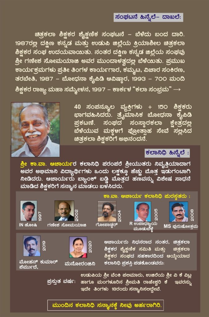 ದಕ್ಷಿಣ ಕನ್ನಡ ಜಿಲ್ಲೆಯ ಸಾಧಕ ಚಿತ್ರಕಲಾ ಶಿಕ್ಷಕರಿಗೆ ‘ಕಲಾ ನಿಧಿ’ ಪ್ರಶಸ್ತಿ ಪ್ರದಾನ | ಅಕ್ಟೋಬರ್ 18