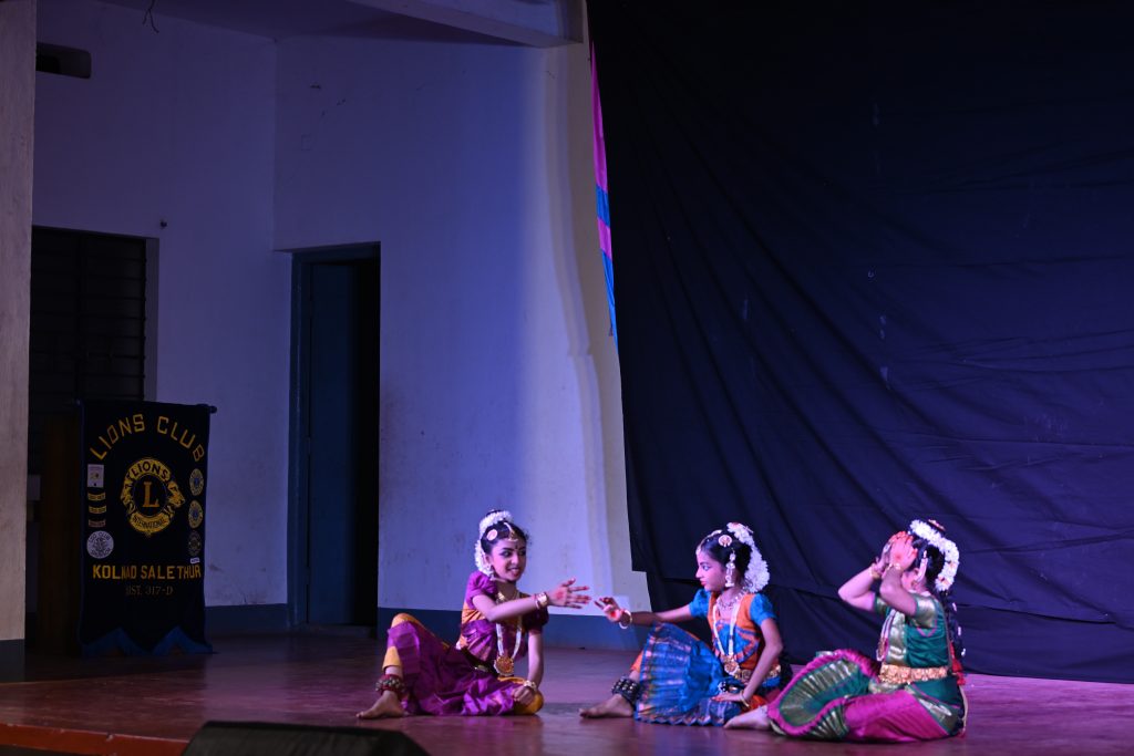 ಬಳಿಕ ನಡೆದ ನೃತ್ಯ ಕಾರ್ಯಕ್ರಮದ ಮೊದಲ ಪ್ರಸ್ತುತಿ ಭರತನಾಟ್ಯದ ಮಾರ್ಗ ಪದ್ಧತಿಯ ಮೊದಲ ನೃತ್ಯ ಬಂಧ ಅಲರಿಪು – ಚತುರಶ್ರ ಜಾತಿಯ ಅಲರಿಪು ಉತ್ತಮ ವಾತಾವರಣ ಸೃಷ್ಟಿಸಿತು. ಮೂವರೂ ಮಕ್ಕಳು ದೈಹಿಕವಾಗಿ ಮಾನಸಿಕವಾಗಿ ಕಾರ್ಯಕ್ರಮಕ್ಕೆ ಸಿದ್ಧರಾದರು. ನಂತರ ರಾಮಾಯಣದ ಯುದ್ಧದ ಸನ್ನಿವೇಶ ವರ್ಣಿಸುವ ಅಲ್ಲಿ ನೋಡಲು ರಾಮ ದೇವರನಾಮದಲ್ಲಿ ಬಹಳ ಉತ್ಸಾಹದಿಂದ ಮೂವರು ಮಕ್ಕಳು ಅಭಿನಯಿಸಿದರು. ರಾಮನು ಯುದ್ಧಭೂಮಿಯಲ್ಲಿ ಮಾಡಿದ ಪವಾಡದ ಅದ್ಭುತವನ್ನು ರಸವತ್ತಾಗಿ ತೋರಿಸಿದರು. ಮೂರನೇ ನೃತ್ಯ ದೇವಿಯ ಸ್ತುತಿ – ಓಂಕಾರ ಬಿಂದು ಮಧ್ಯ ನಿಲಯೇ. ಇದರಲ್ಲಿ ದೇವಿಯನ್ನು ಸ್ತುತಿಸಿ ದುಷ್ಟ ಮಹಿಷಾಸುರನನ್ನು ಸಂಹರಿಸಿದ ಚಾಮುಂಡೇಶ್ವರಿಯ ಸನ್ನಿವೇಶವನ್ನು ಬಹಳ ರಸವತ್ತಾಗಿ, ತಾಳಕ್ಕೆ ಸರಿಯಾದ ಹೆಜ್ಜೆಗಾರಿಕೆಯಲ್ಲಿ ಪ್ರಸ್ತುತಪಡಿಸಿದರು.
