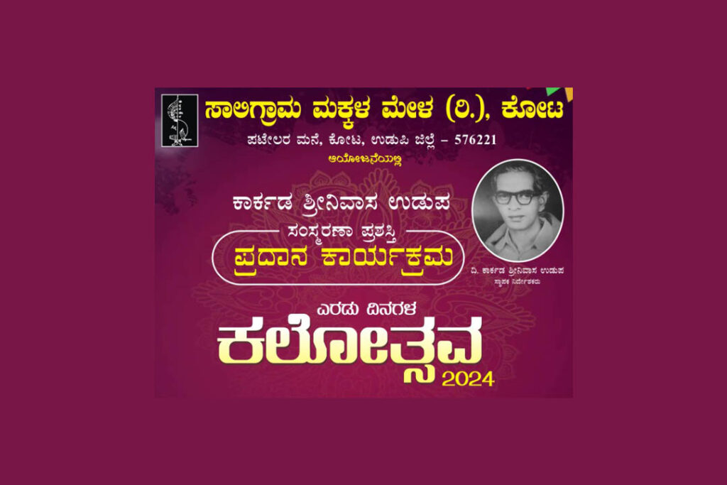 ಉಡುಪಿ : ಸಾಲಿಗ್ರಾಮ ಮಕ್ಕಳ ಮೇಳ (ರಿ.) ಕೋಟ ಇದರ ವತಿಯಿಂದ ಎರಡು ದಿನಗಳ ‘ಕಲೋತ್ಸವ -2024’ ಸಮಾರಂಭವು ದಿನಾಂಕ 11-02-2024 ಮತ್ತು 12-02-2024ರಂದು ಕೋಟ ಪಟೇಲರ ಮನೆ ಆವರಣದಲ್ಲಿ ನಡೆಯಲಿರುವುದು.