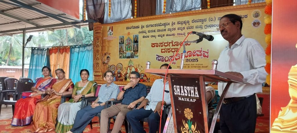 ಈ ಕಾರ್ಯಕ್ರಮವನ್ನು ದೀಪ ಬೆಳಗಿ ಉದ್ಘಾಟಿಸಿ ಮಾತನಾಡಿದ ಹಿರಿಯ ಸಾಹಿತಿ ಕೊಳ್ಚಪ್ಪೆ ಗೋವಿಂದ ಭಟ್ “ಕಾಸರಗೋಡಿನಲ್ಲಿ ಕನ್ನಡ ಭಾಷೆ ಉಳಿಯಬೇಕಾದರೆ ಭವಿಷ್ಯಕ್ಕಾಗಿ ಕನ್ನಡ ಜಾಗೃತಿ ಆಗಲೇಬೇಕು. ಎಳೆಯ ಮಕ್ಕಳಲ್ಲಿ ಕನ್ನಡ ಪರವಾದ ಮನೋಭಾವ ಬೆಳೆಸಬೇಕು” ಎಂದು ಹೇಳಿದರು. ಗಝಲ್ ಕವಿ ಡಾ. ಸುರೇಶ್ ನೆಗಳಗುಳಿ ಸಭೆಯ ಅಧ್ಯಕ್ಷತೆ ವಹಿಸಿ ಮಾತನಾಡಿ “ನವರಾತ್ರಿಯ ಒಂಭತ್ತು ಬಣ್ಣಗಳಲ್ಲಿ ಸಂತೋಷ, ಶಾಂತಿ, ಪ್ರೀತಿ, ಆಧ್ಯಾತ್ಮಿಕತೆಯಿಂದ ನಾಡಹಬ್ಬವಾಗಿದೆ. ಇದರಿಂದ ಸಮಾಜವು ಸುಭಿಕ್ಷವಾಗುತ್ತದೆ” ಎಂದು ಹೇಳಿದರು.