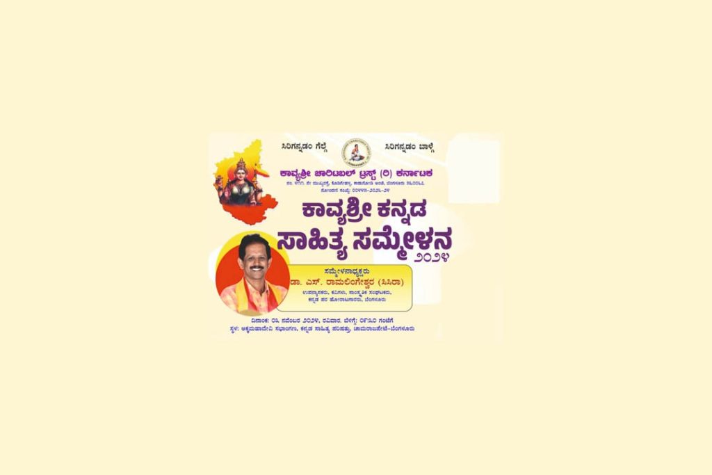 ಬೆಂಗಳೂರು : ಕಾವ್ಯಶ್ರೀ ಚಾರಿಟಬಲ್ ಟ್ರಸ್ಟ್ (ರಿ) ಕರ್ನಾಟಕ ಆಯೋಜಿಸುವ ಕಾವ್ಯಶ್ರೀ ಕನ್ನಡ ಸಾಹಿತ್ಯ ಸಮ್ಮೇಳನದಲ್ಲಿ ವಿವಿಧ ಕ್ಷೇತ್ರದ ಸಾಧಕರಿಗೆ ಕಾವ್ಯಶ್ರೀ ಕನ್ನಡ ರಾಜ್ಯೋತ್ಸವ ಪ್ರಶಸ್ತಿ ಹಾಗೂ ಕಾವ್ಯಶ್ರೀ ಪ್ರಶಸ್ತಿ ಪ್ರದಾನ, ಕವಿಗೋಷ್ಠಿ, ಚರ್ಚಾಗೋಷ್ಠಿ, ಸಂವಾದ ಹಾಗೂ ಸಾಂಸ್ಕೃತಿಕ ಕಾರ್ಯಕ್ರಮಗಳು ದಿನಾಂಕ 03 ನವೆಂಬರ್ 2024ರ ರವಿವಾರ ಬೆಳಿಗ್ಗೆ ಘಂಟೆ 09.30ರಿಂದ ಬೆಂಗಳೂರಿನ ಚಾಮರಾಜಪೇಟೆಯ ಕನ್ನಡ ಸಾಹಿತ್ಯ ಪರಿಷತ್ತಿನಲ್ಲಿರುವ ಅಕ್ಕಮಹಾದೇವಿ ಸಭಾಂಗಣದಲ್ಲಿ ನಡೆಯಲಿದೆ.