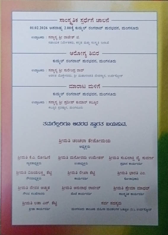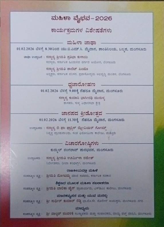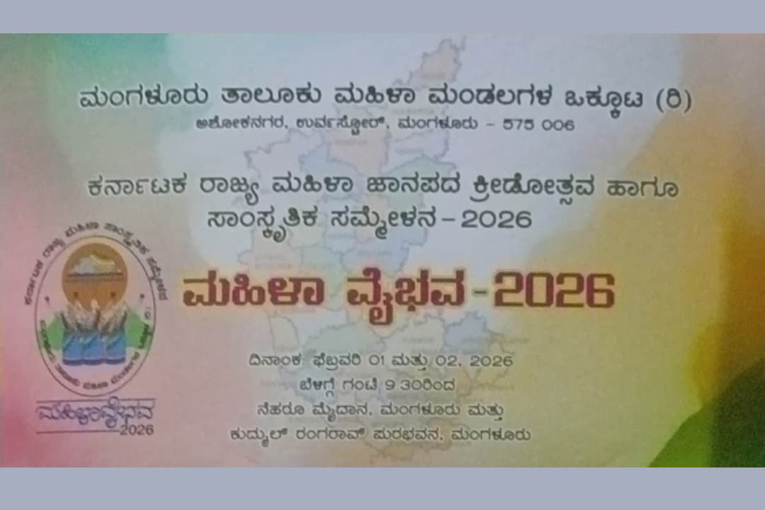 ಮಂಗಳೂರು ತಾಲೂಕು ಮಹಿಳಾ ಮಂಡಲಗಳ ಒಕ್ಕೂಟದಿಂದ ‘ಮಹಿಳಾ ವೈಭವ -2026’ | ಫೆಬ್ರುವರಿ 01 ಮತ್ತು 02