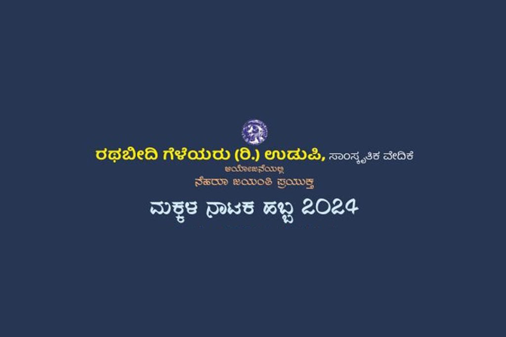 ಉಡುಪಿ : ಸಾಂಸ್ಕೃತಿಕ ವೇದಿಕೆ ರಥಬೀದಿ ಗೆಳೆಯರು (ರಿ.), ಉಡುಪಿ ಇದರ ವತಿಯಿಂದ ನೆಹರೂ ಜಯಂತಿ ಪ್ರಯುಕ್ತ ‘ಮಕ್ಕಳ ನಾಟಕ ಹಬ್ಬ -2024’ವನ್ನು ದಿನಾಂಕ 17 ನವೆಂಬರ್ 2024ರಂದು ಸಂಜೆ 3-00 ಗಂಟೆಗೆ ಉಡುಪಿಯ ಎಂ.ಜಿ.ಎಂ. ಕಾಲೇಜಿನ ನೂತನ ರವೀಂದ್ರ ಮಂಟಪದಲ್ಲಿ ಹಮ್ಮಿಕೊಳ್ಳಲಾಗಿದೆ. ಬೆಂಗಳೂರಿನ ರಂಗ ತಜ್ಞರಾದ ಶಶಿಧರ ಭಾರೀಘಾಟ್ ಇವರು ಮುಖ್ಯ ಅತಿಥಿಗಳಾಗಿ ಭಾಗವಹಿಸಲಿದ್ದಾರೆ.