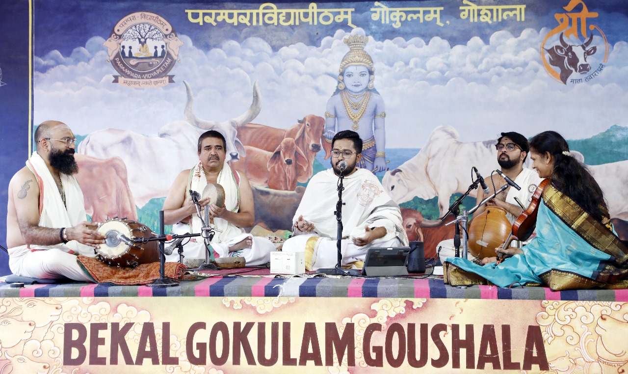 ಪೆರಿಯ : ಬೇಕಲದ ಗೋಕುಲಂ ಗೋಶಾಲೆಯಲ್ಲಿ ಪರಂಪರಾ ವಿದ್ಯಾಪೀಠದ ಅಡಿಯಲ್ಲಿ ನಡೆಯುತ್ತಿರುವ ಐದನೇಯ ದೀಪಾವಳಿ ಸಂಗೀತೋತ್ಸವದ ದಿನಾಂಕ 27 ಅಕ್ಟೋಬರ್ 2025ರ ಒಂಬತ್ತನೇ ದಿನ ಕಾಂತಾರ ಚಲನಚಿತ್ರದ ‘ವರಾಹ ರೂಪಂ’ ಗೀತೆಯನ್ನು ಹಾಡಿ ಖ್ಯಾತರಾದ ಸಾಯಿ ವಿಘ್ನೇಶ್ ಇವರು ಆಕರ್ಷಕ ಸಂಗೀತ ಕಛೇರಿ ನಡೆಸಿಕೊಟ್ಟರು.
